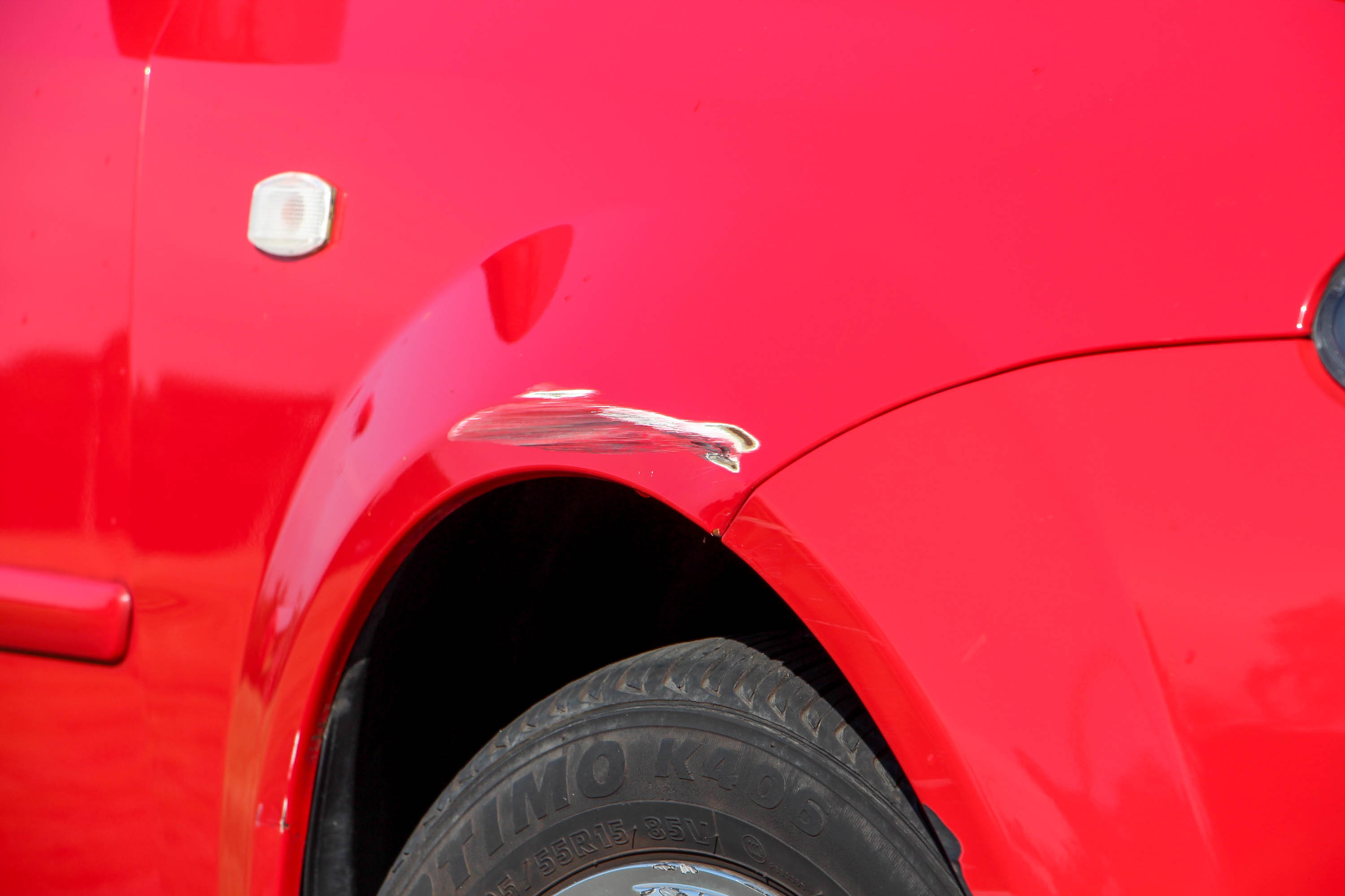 Fara, illetve sofőr felőli oldala sokkal jobb állapotú, mint az orra, illetve a jobbja. Távolról nézve hibátlan, közelről látszik, hogy a csomagtérajtón mattul a fényezés