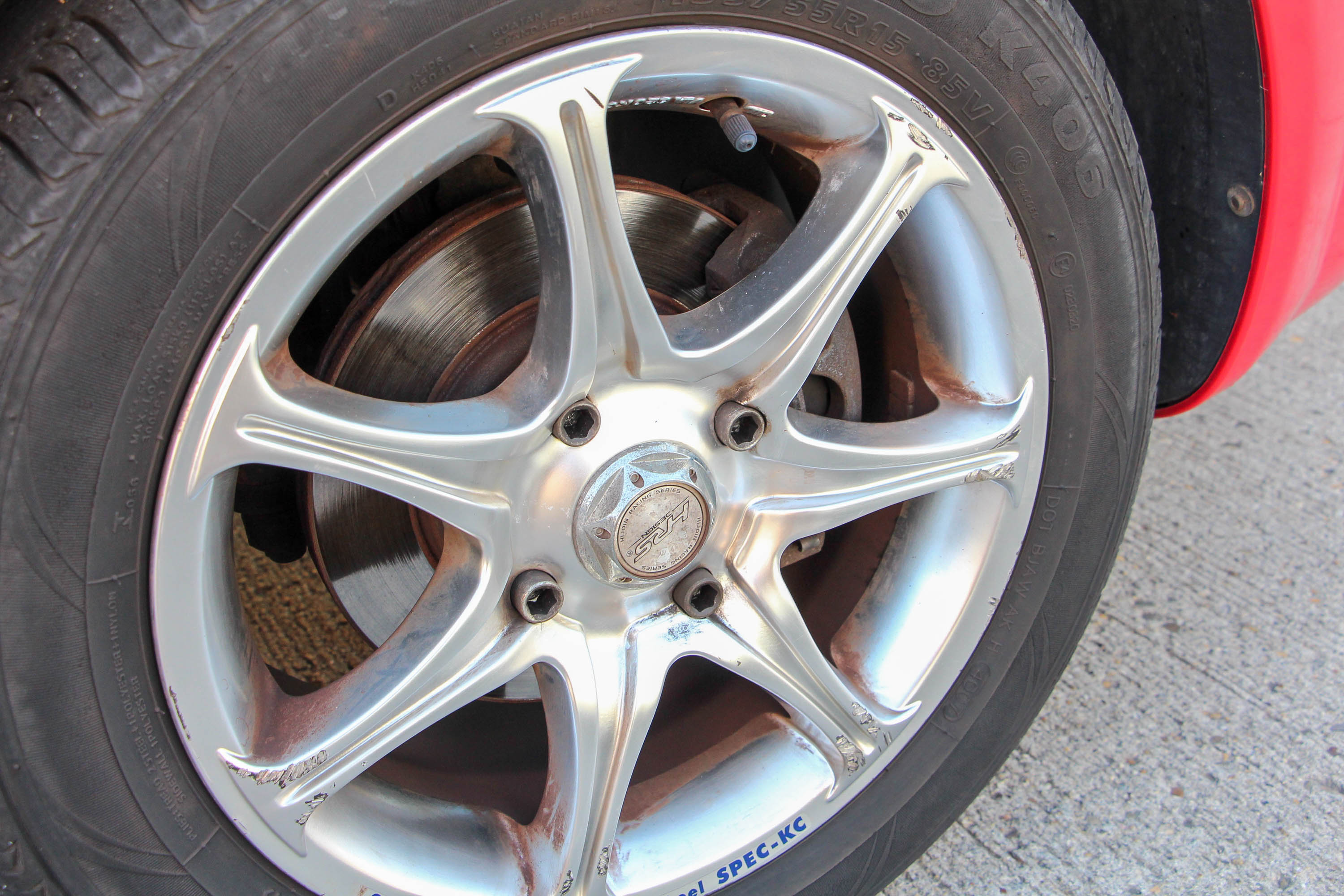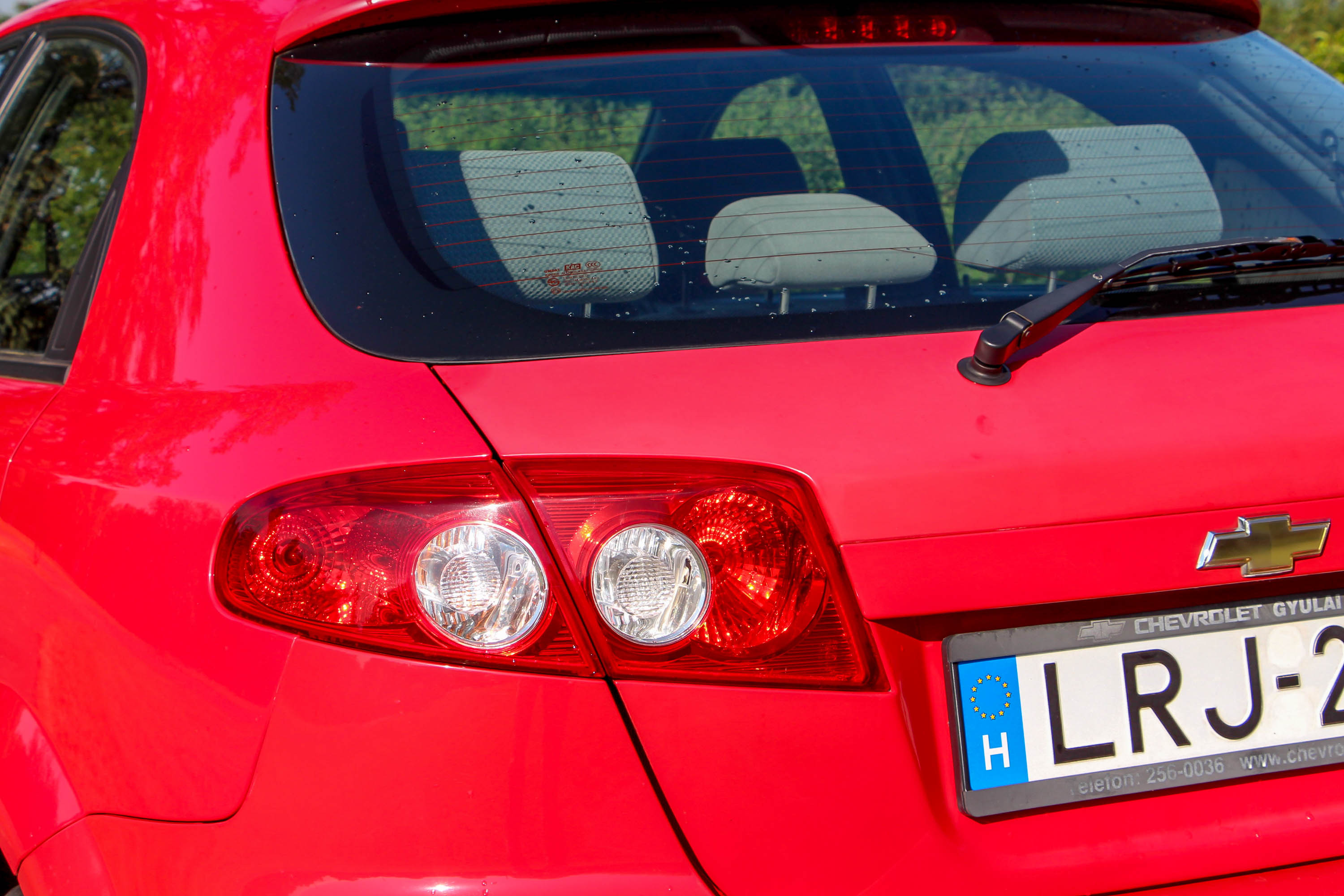 Miként lehet ez - keddi körképünk feltételeinek is megfelelő - az autó 2010-es? Úgy, hogy csak az első - amúgy hazai - forgalomba helyezése akkori, maga az autó 2008-as, az utolsó gyártási évből való. Akkor sem volt tehát ez már fiatal, amikor megkapta rendszámát, hogy mást ne mondjak, 3 éves abroncsokkal. Azóta is azok vannak rajta, csak már kilencedik évüket tapossák. Valahai és első gazdája automataváltóval és a gazdag ellátmányt adó Elite felszereltséggel választotta autóját, piros színben, ami mutatós volt újkorában, ám mint tudjuk, brutálisan mattul. Érdekesség, hogy az élete zömét egy kert teljesen azonos pontján, azonos pozícióban töltő Lacetti egyes karosszériaelemei eltérő mértékben mattultak be. Az persze típusjellemző, hogy a leginkább mattuló elem a csomagtérfedél, ahogyan egyébként volt az az első Astránál is. Kívülről néhány apróbb sérülés, parkoláskori meghúzás miatt nem túl könnyű beleszeretni az összességében egyben lévő autóba. De legalább semmi komoly baja nincsen - érvelhet mellette eladója. És ez igaz is, még az a fényszóró is teljesen ép, amelyik mellett kicsit be van nyomva a lökhárító. Leszereléssel, némi nyomkodással vélhetően szinte el is lehetne tüntetni a sérülést. Az egykori tulaj vélhetően nem nagyon érezte az amúgy csak 1,73 méter széles autó jobb oldalát, így aztán nem csak a lökhárító (több helyen ráadásul), a sárvédő íve is pont ott van meghúzva, szerencsére csak alapozóig, így ott sincs komoly baj. Hátul viszont nincs gond - leszámítva a látványosan öregedő fényezést, és a kocsi balja is rendben van.