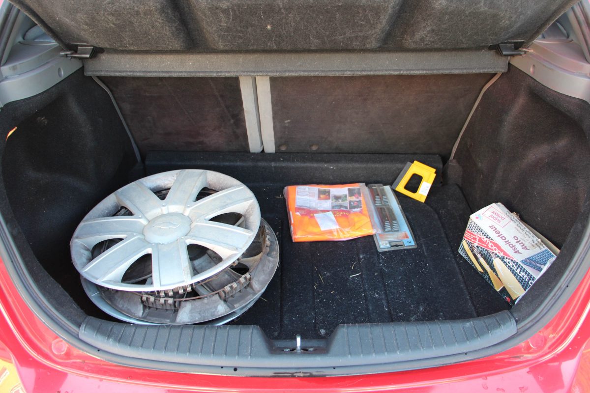 Csupán 275 literes, könnyedén bővíthető a csomagtér. A téli gumit hordó gyári acélfelnik dísztárcsái is megvannak még, továbbá számos hasznos kiegészítő is található a bácsiautóban