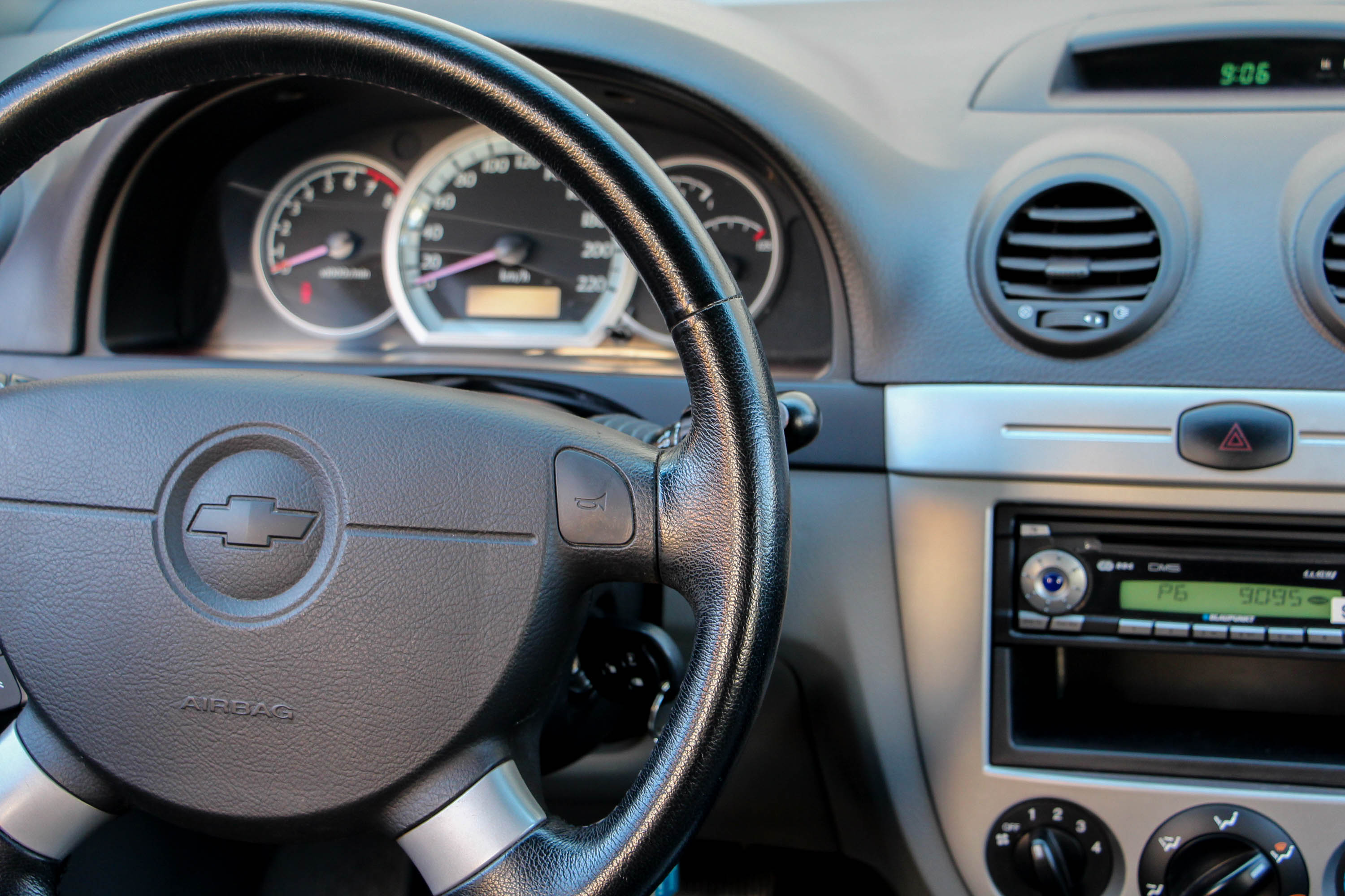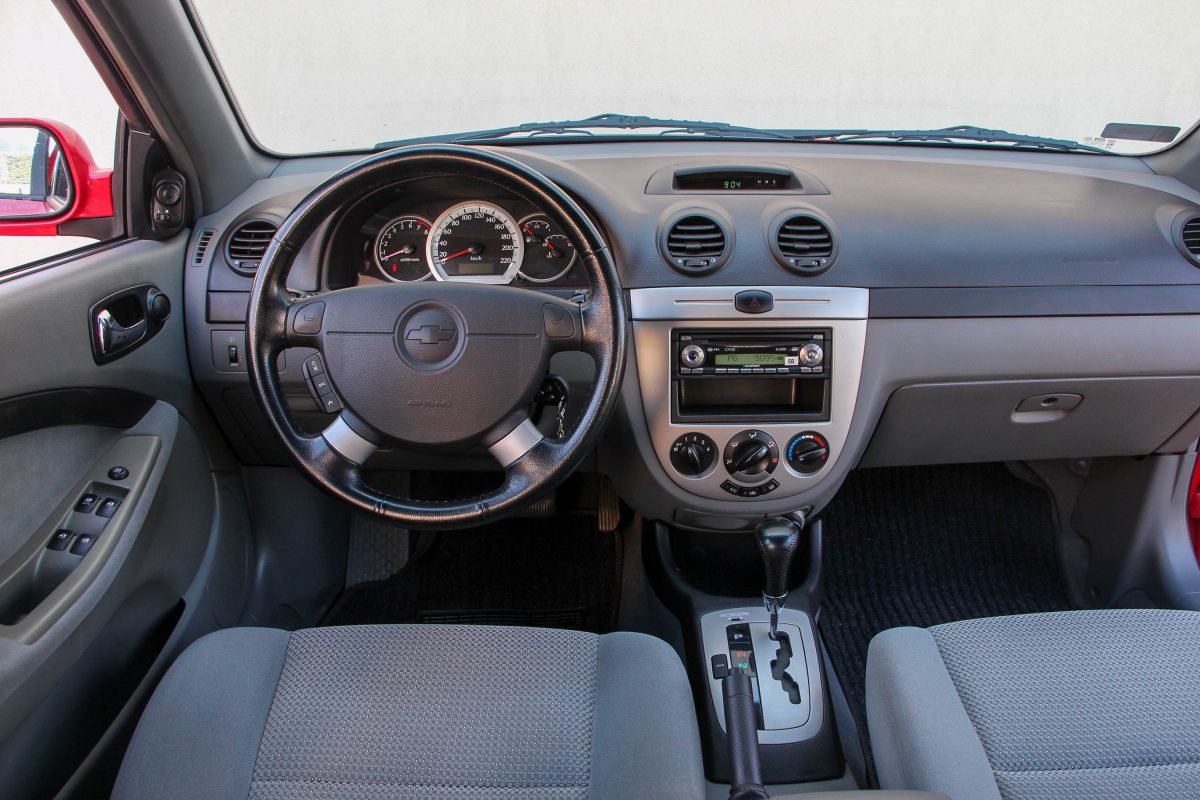 Belülről újszerű a mindössze 70 ezer kilométert futott Lacetti. A kemény műanyagok tartósak, a plüss üléskárpit ma is kellemes, a CD-s rádió itt a le-fel, ki-be tologatható kormánykerékről is vezérelhető