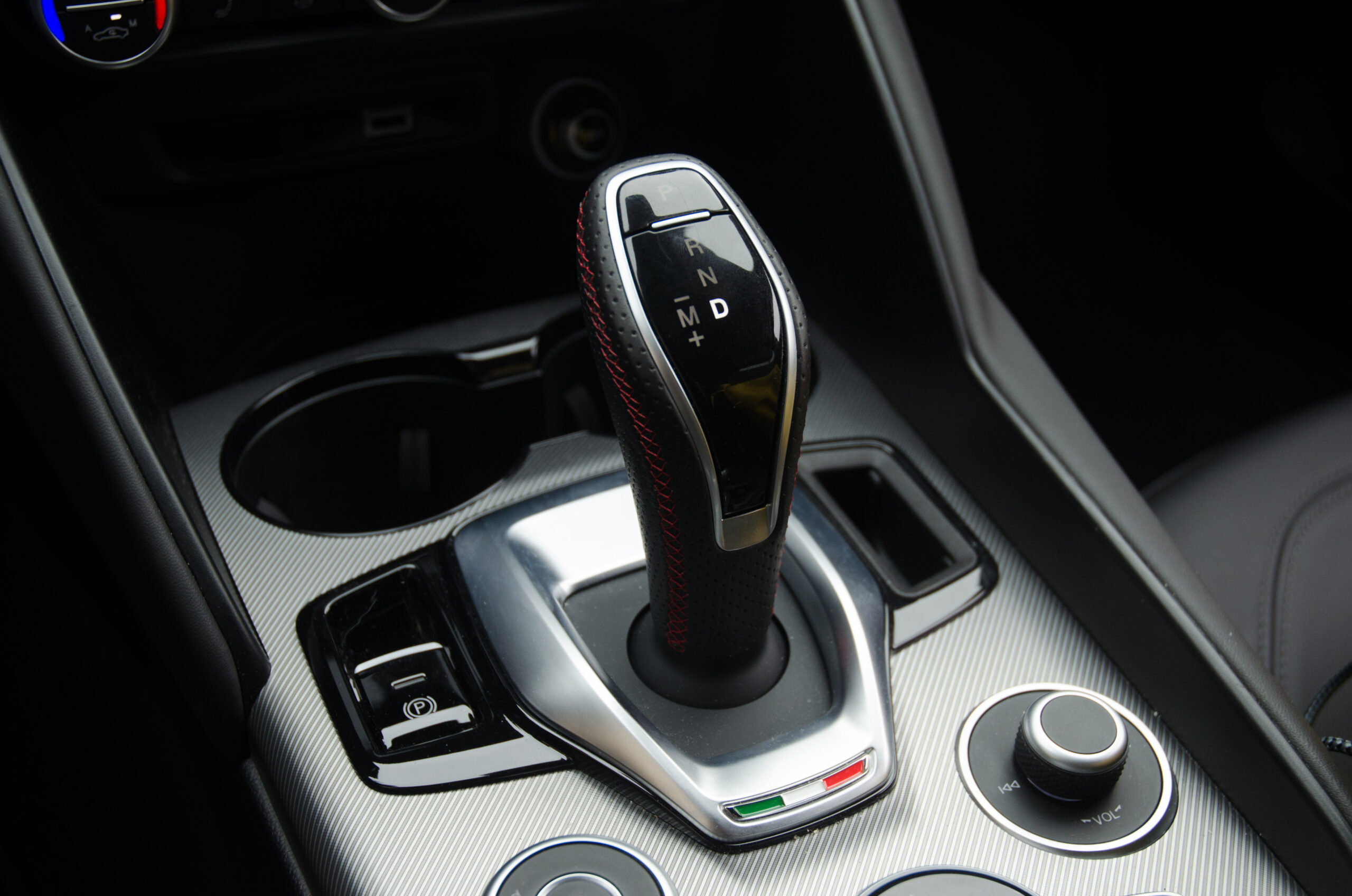 A beltérben kezd azonban igazán különbözni a Giulia a konkurenseitől. Egyrészt a képernyők uralta modern tér helyett egy klasszikus formavilágot kapunk, másrészről minden a sportosságra lett kihegyezve. Hatalmasak a váltófülek a háromágú, bőrrel borított, multifunkciós sportkormány mögött, feszes, jól tartó oldaltámaszokat kaptak a memóriás, elektromosan állítható bőrülések, valamint hangsúlyos helyre került az üzemmódválasztó, amelynek segítségével egyetlen mozdulattal sportmódba lehet tekerni a Giuliát. Látvány terén a vörös varrás és a sportos, alumínium műszerfalbetétek teszik teljessé az összképet, a minőség pedig tapintható gyakorlatilag mindenen, amihez hozzáérsz. Illetve - számomra legalábbis - felüdülés, hogy nem áll ki tabletként egy 20 colos kijelző a semmiből, helyette a műszerfal vonalaiba integrált 8,8 colos képernyővel kell beérniük a tech-függőknek.
