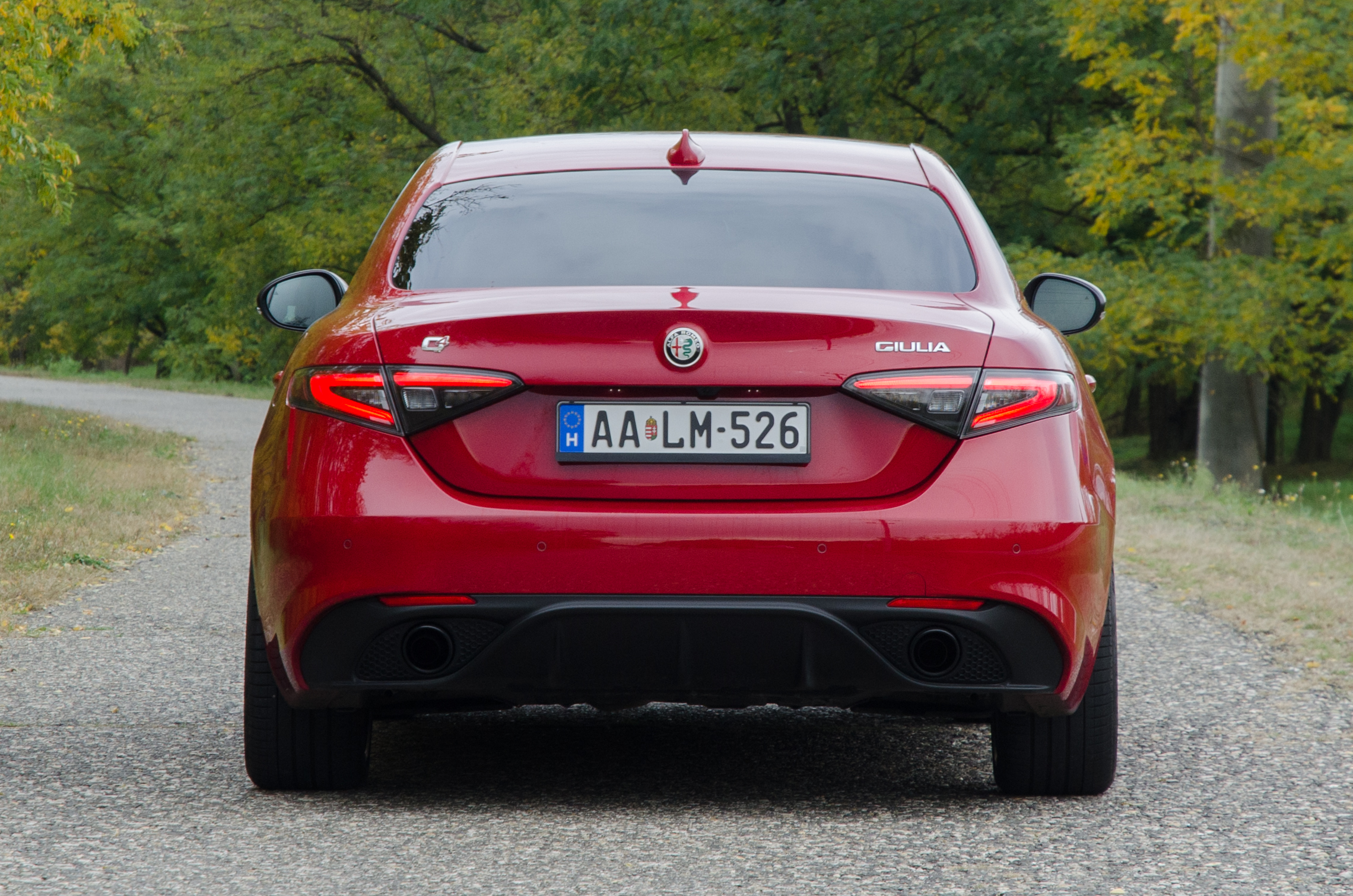 Azonnal leszögezendő, hogy ezt az autót, ebben a vörös színben rendszeresen megbámulják, ráadásul jó értelemben. Mindene megvan, hogy vonzza a tekinteteket: különleges, elegáns forma, néhány sportos kiegészítő, valódi, tényleg kellemes motorhang, ami pedig a legfontosabb: jellegzetes stílusjegyek. Bizony, a Giulia leginkább azzal tűnik ki a tömegből, hogy nem követi a trendeket, még a frissítés után sem. Nincs hatalmas hűtőmaszkja, nincs túlmodernizált formavezetése és az alapáras színe a piros: a Competizione szinten még lehetőségként sincs fehér vagy ezüst fényezés, az egyetlen szürke opció pedig matt. De vajon mit rejt a szokatlan formaterv?