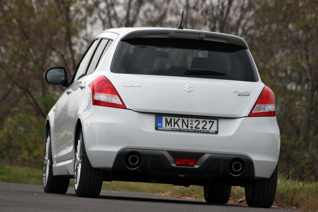 [BANNER type="1"] A méretek maradtak, a súly sem nőtt. A két hatalmas oldalajtó helyett négy kisebb van, mint a mezei ötajtósoknál is. Azonban míg a polgári verziók a facelifttel új arcot kaptak, a Swift Sport még a régi, csöppet más köntösben pózol. Más a hűtőmaszk, más a lökhárító, nincs LED-es nappali menetfény vagy integrált indexes tükör, van ellenben xenon. És 17 colos alufelni 195/45-ös abroncsokkal. És vaskos küszöbspoiler. És tetőszárny. És áldiffúzor meg dupla kidörrenő. Ó, a hátsó lámpa is más. A fekete A- és B-oszlop azonos.