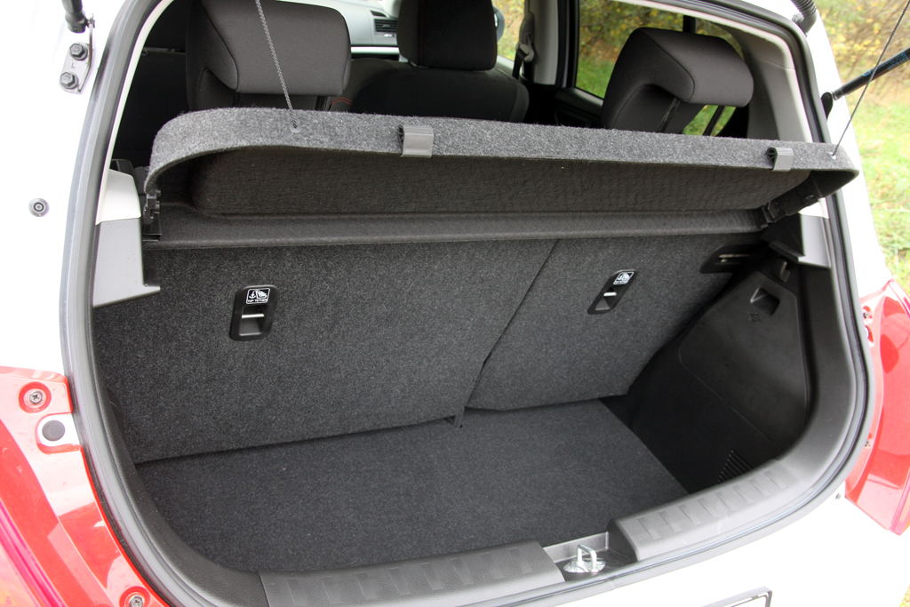 Újdonság, hogy osztottan dönthető a támla és háromszemélyes a hátsó sor. A csomagtartó apró, mint minden Swiftben, bővítve jókora a lépcső