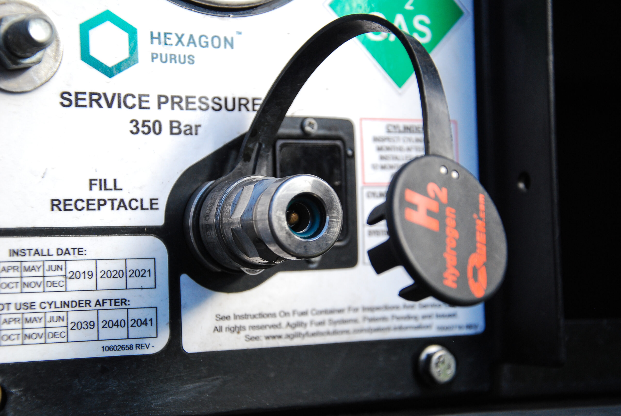 A hidrogén-töltőnyílás a busz jobb oldalán található, míg az akkucsomag vésztöltője hátul, a jobb oldali lámpatest mellett keresendő