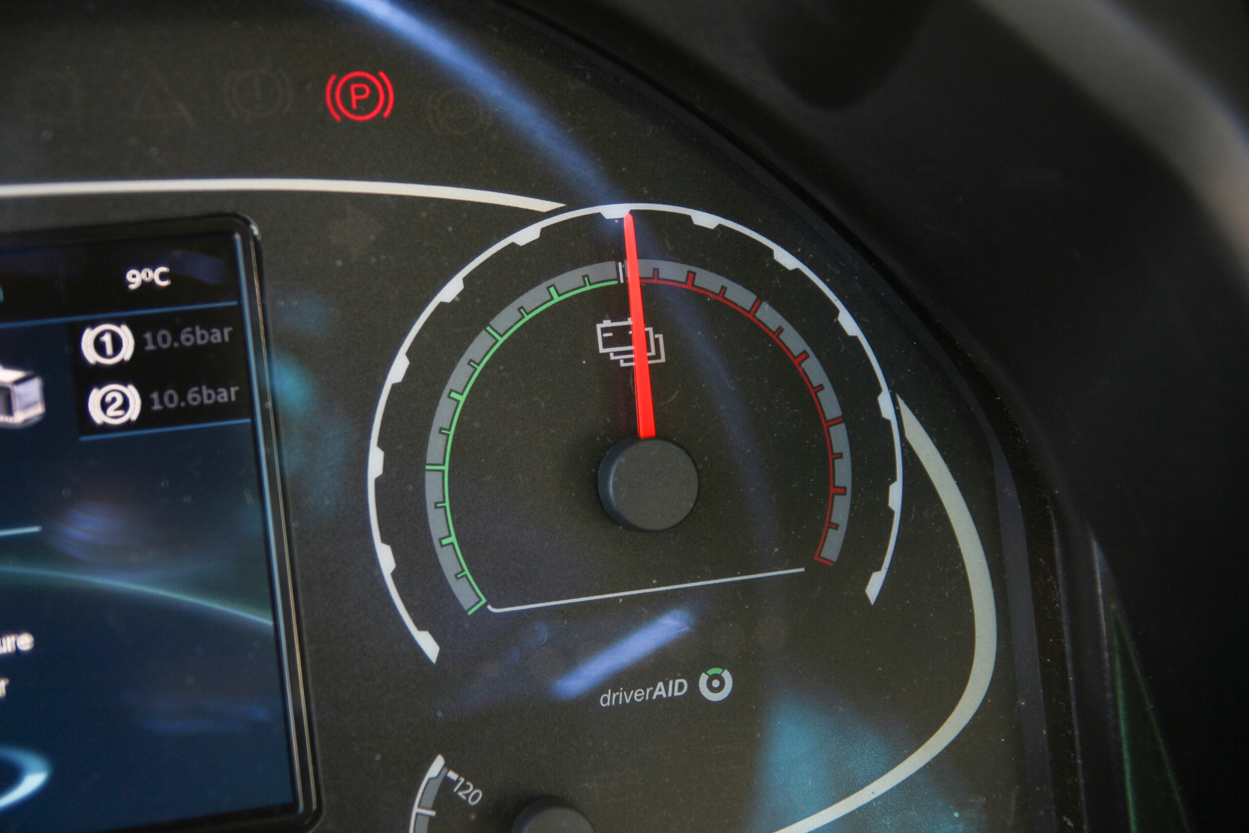A tartályok nyomásértékén és töltöttségén túl az akkumulátor állapota is megfigyelhető a műszerfalon