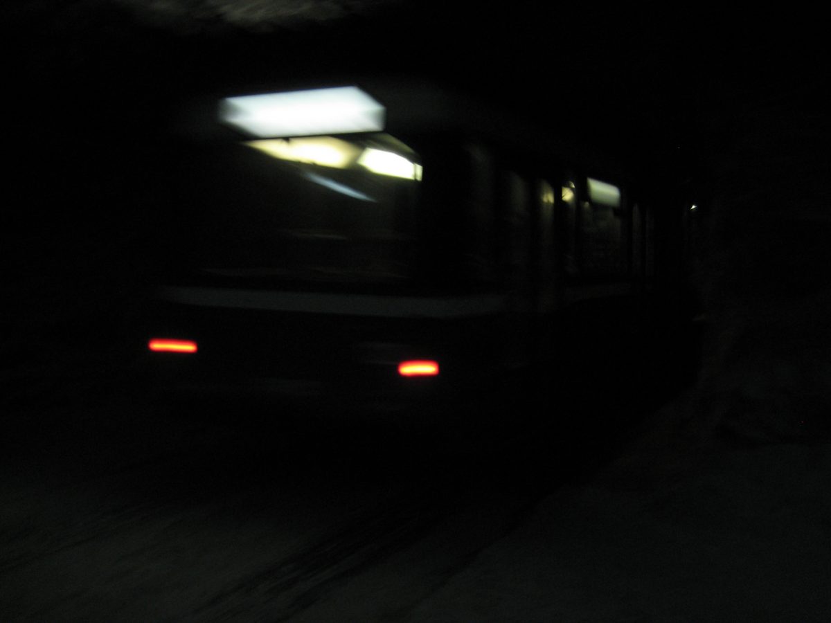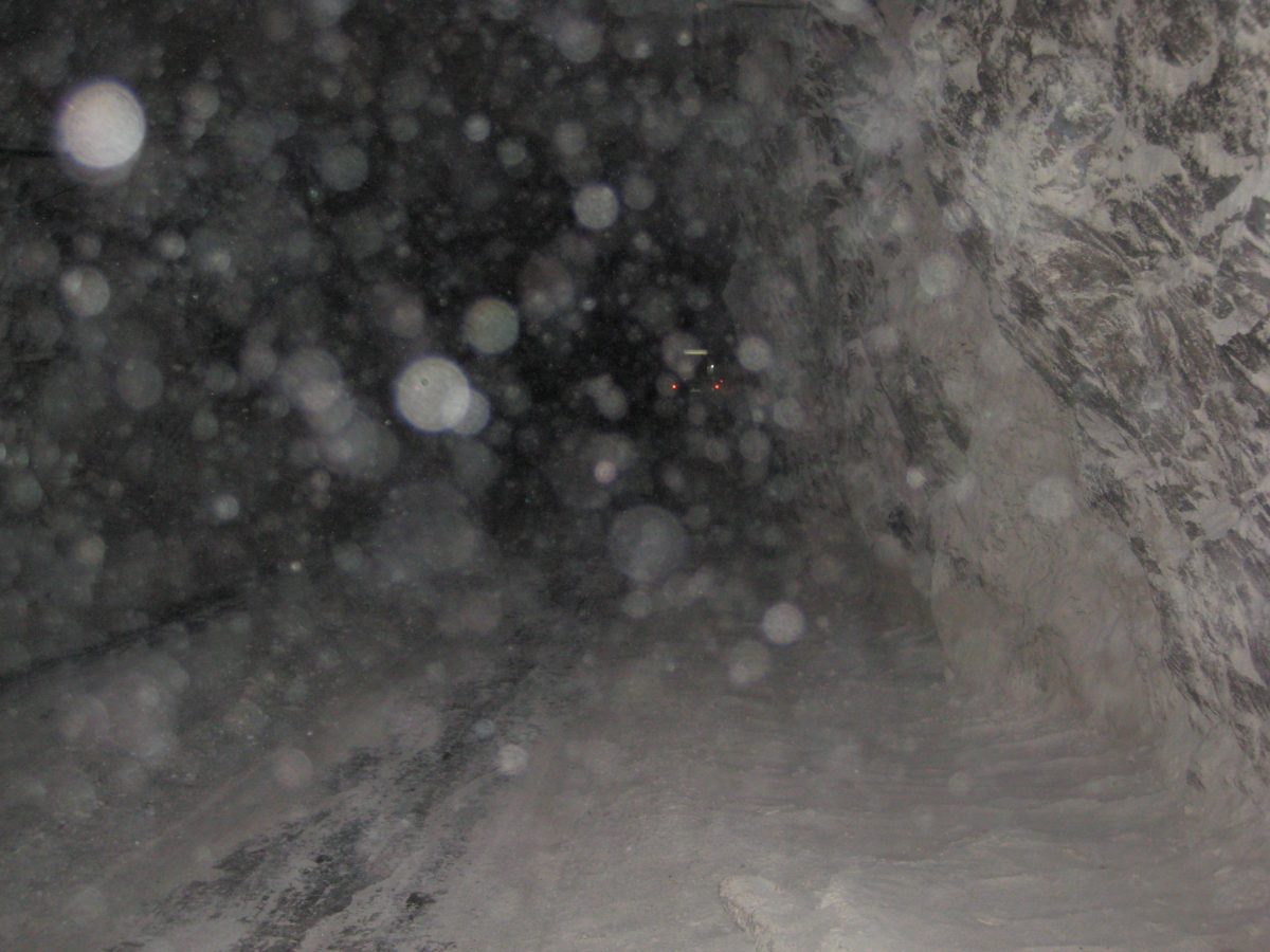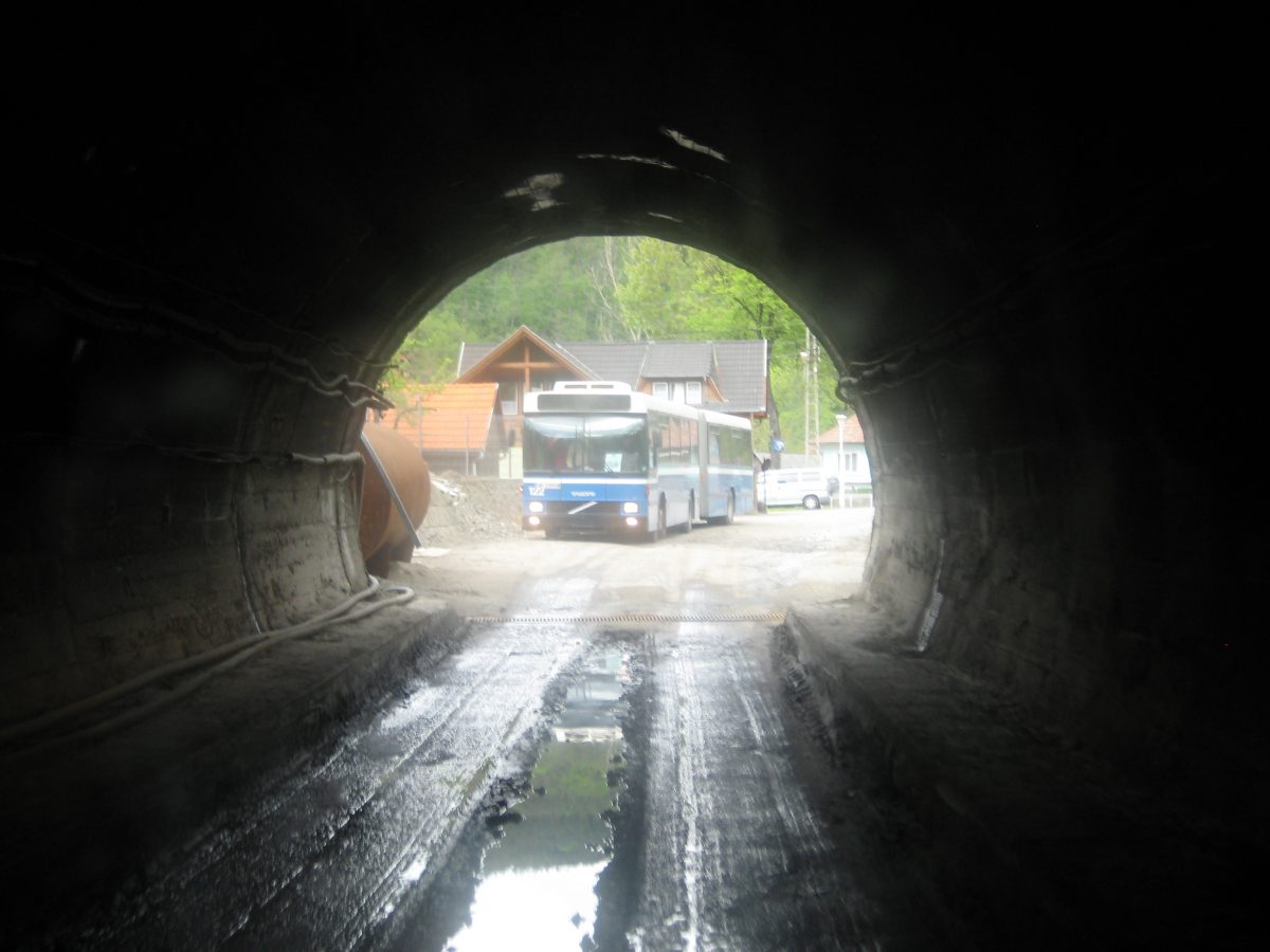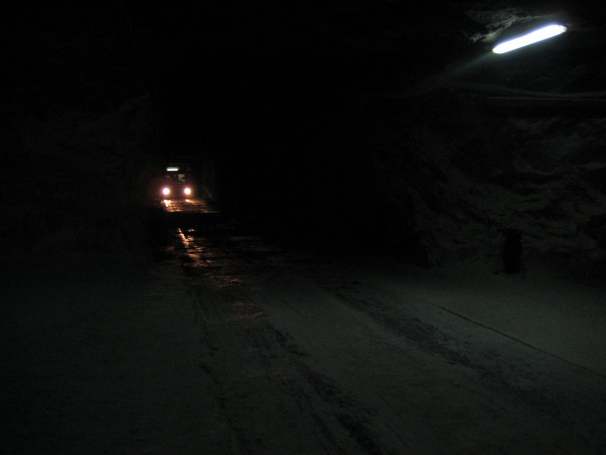 A padlólemezen át érezni a kimustrált dízelmotor minden egyes rezdülését, amely leírhatatlan szaggal párosul. Aztán egyszer csak záródnak az ajtók, s a busz kövér gázzal a bánya bejárata felé veszi az irányt. Határozottan mozog, egyenesen és gyorsan haladunk a föld alatt egy vaksötét, másfél kilométeres szűk alagútban jó néhány percen át. Gyanítom, hogy a sofőr álmából felébresztve is ismeri már az alagút minden egyes törését, de azért nem örülnék neki, ha kiégnének a fényszórók. Ráadásul úgy fest, csupán centiméterek vannak az ablak és a fal közt, az első szélvédőn kinézve látni a göröngyös útfelületet - amin nap mint nap, a forgalomhoz igazítva jár a bányavállalat flottája.