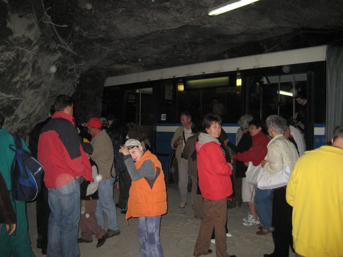 Aztán egyszer csak megáll az öreg csuklós egy félhomályos kis teremben, ahol több zsilipen át, hosszú falépcsőkön, mintegy háromszáz darabon dönget le a busznyi nép, néhány rekeszen keresztül még érezni egyre gyengébben a dízelszagot, mígnem egy felfoghatatlanul magas teremben találjuk magunkat, s már tényleg csupán csak a só illata érvényesül. 120 méter mélységben egy valódi földalatti kisvárost építettek: van itt játszótér, ping-pong asztal, kávézó, kiállítás és még egy kis sótemplom is. Sőt, egyszer csak cseng a mobilom, amit azért nem kapcsoltam ki, mert ugye a föld gyomrában úgysincs térerő. Tévedtem, még WIFI hálózatot is kiépítettek, hogy ott se kelljen lemondani a civilizációról.