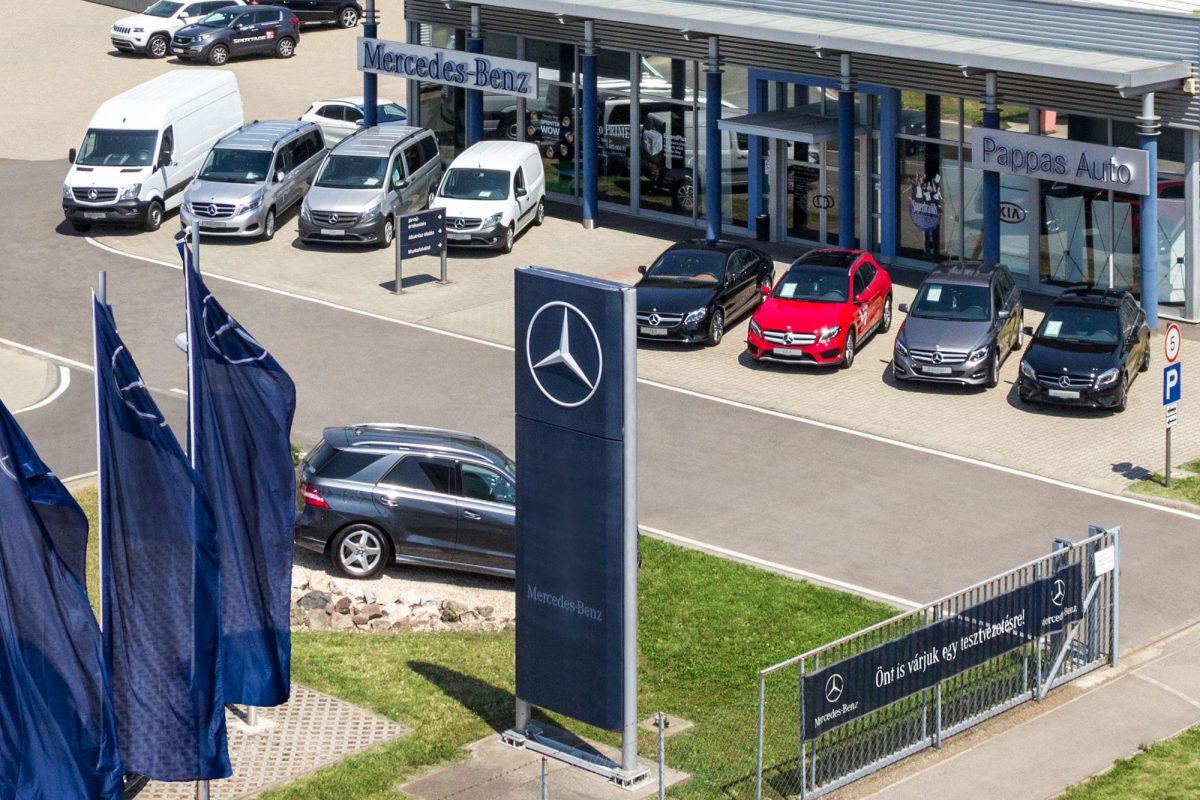 Pontosan negyed évszázada, 25 éve a hazai Mercedes-forgalmazás központja a XIII. kerületi Kárpát utca, ahol 1990-ben az egykori pártgarázst megvásárolva nyitotta meg az MB-Auto Magyarország Kft-t az amúgy az osztrák hálózatot is üzemeltető és korábban kiépítő Pappas csoport. Az importőr és a kereskedőhálózat 2005-ben az EU-s irányelveknek megfelelően különvált, azóta Pappas Auto Magyarország néven fut a ma 6 telephelyével, több mint 10 forgalmazott márkájával és 450 munkatársával a legjelentősebb hazai autókereskedelmi cégnek számító vállalat.