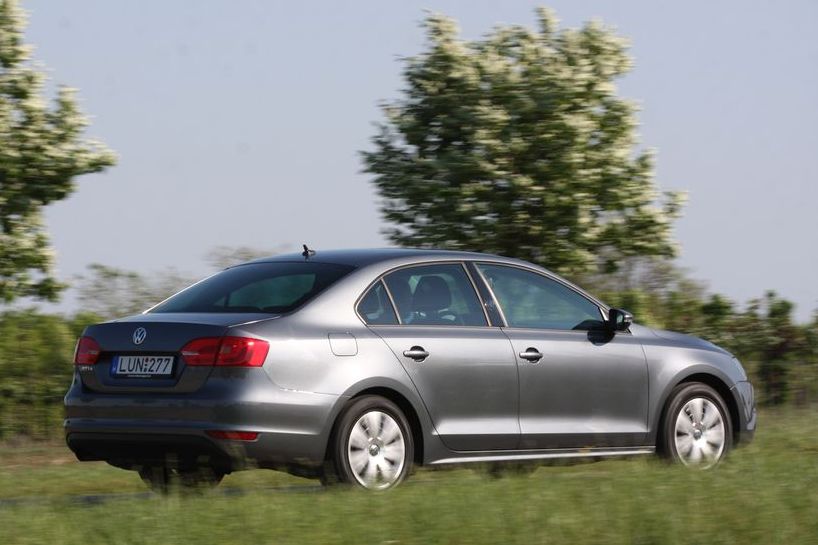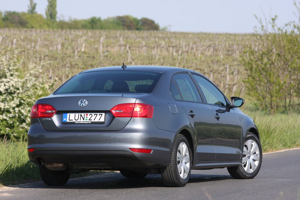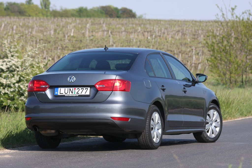 Nemigen lehet belekötni a Jettába, dinamikus, korrektül összerakott, takarékos és még kényelmes is. Ha árát (1.2 TSI Trendline: 4 948 500 Ft, 1.2 TSI Comfortline: 5 207 250 Ft) a Volkswagenek között kell elhelyezni, az azonos motorral szerelt Golfhoz mérten még némi árelőnyről is beszélhetünk (ennek oka a Jetta mexikói gyártása és néhány olcsóbb beltéri műanyagja), ha pedig a Passathoz viszonyítunk, már igen jelentős, közel két millió forinttal kedvezőbb a vételár. Ám házon belül sem csak a Volkswageneknek, hanem akár a Skodáknak is konkurencia a Jetta. Nevezetesen a fél millió forinttal olcsóbb Octavia vevőiből csábíthat át. Sokat persze nem, hiszen felnyíló hátsó ablakával a Skoda sokkal praktikusabb. Hiába óriási, 510 literes a Jetta csomagtere, jelképes bővíthetőségével messze nem olyan jól kihasználható, mint cseh padlólemeztársáé. Így tehát a Jetta azon vásárlókra számíthat, akik kellően konzervatívak a négyajtós karosszériához, a dögunalom berendezéshez, és készek a VW emblémáért combos felárat fizetni – a legfőbb vetélytársként említhető Renault Fluence 3,6, illetve az Opel Asra Classic III Sedan 3,74millióért kínálkozik ugyanezen szegmensben. Kemény meccs, de a VW újabban az említetteken túl 4 év/200 000 kilométer garanciát is bevet, s ezzel, valamint a márka nimbuszával még szívdobogtató részletek nélkül is jó eséllyel sok vevőt vonzhat. Akinek nem kellenek a középkategóriában ma már megszokott vezetést támogató rendszerek (sávtartó elektronika, távolságtartós tempomat stb.) s izgalmas, formás részletek helyett inkább régről ismert emblémát áhít autójához, az bizony más márkáktól könnyedén csábulhat át a Passatnál alig kisebb négyajtóshoz.