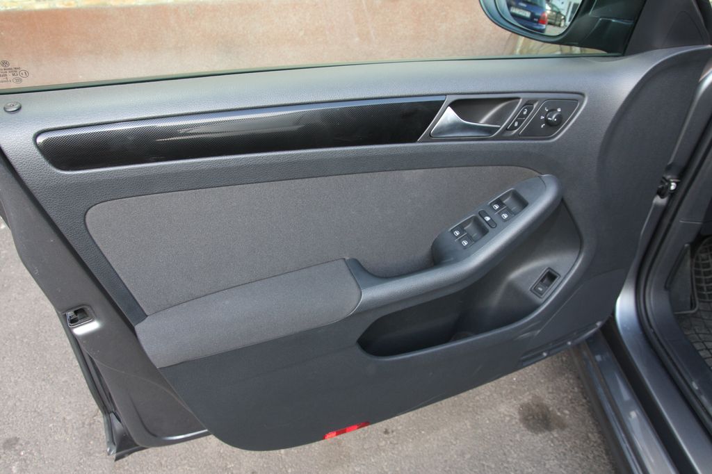 Noha a Jetta alakja erőteljesen Passatos, mégsem egyértelmű másolata annak, az első lámpák például kifejezetten a Polóéira hajaznak. Még jó, hogy nincs komolyabb forma-rokonság, hiszen a Jetta nem csak formájával és külső méreteivel, jellemzőivel is erőteljesen a Passat nyomában lohol. Utasterének helykínálata csak hajszálnyit marad el tőle, és mivel a Passaté elsőrangú, itt is igen tisztességes. Hasonlóan korrekt a kidolgozás is, a műszerfal zöme puha plasztik. Míg azonban a külső dizájnvilága teljesen mai, a kokpit rajzolata a kilencvenes éveket hozza: alapvetően szögletes, lekerekített szélekkel, anyaga pedig nem csak a Passatban, de még a Golfban megszokottaknál is puritánabb. Hiába, a Jetta gyengébb vásárlóerejű piacoknak szól, amennyire a Volkswagennél lehet, kedvező árért ad nagy teret. Az európai verzió egyébként a kifejezetten olcsónak készített tengerentúli kiviteleknél picivel igényesebb, így aztán az itteni mezőnyben elfogadhatónak tekinthető. A részletek, a műszerórák és a kapcsolók, a Comforline felszerelésnél automata, oldalanként külön szabályozható hőmérsékletű légkondicionáló és a rádió gombjai a mai Volkswagenekből megszokottak. Noha a tesztautó már a második, Comfortline felszerelésű volt s ennek megfelelően első ülései komfortosabb kivitelűek (és mindkét oldalon szabályozható magasságúak és gerinctámaszúak), a legfontosabb extrák már az alap Trendline-ban is megvannak, például az elektromos ablakok már abban is egyetlen érintésre végigfutók, a tükrök is elektromosak és persze a zárakat is elektronika mozgatja.