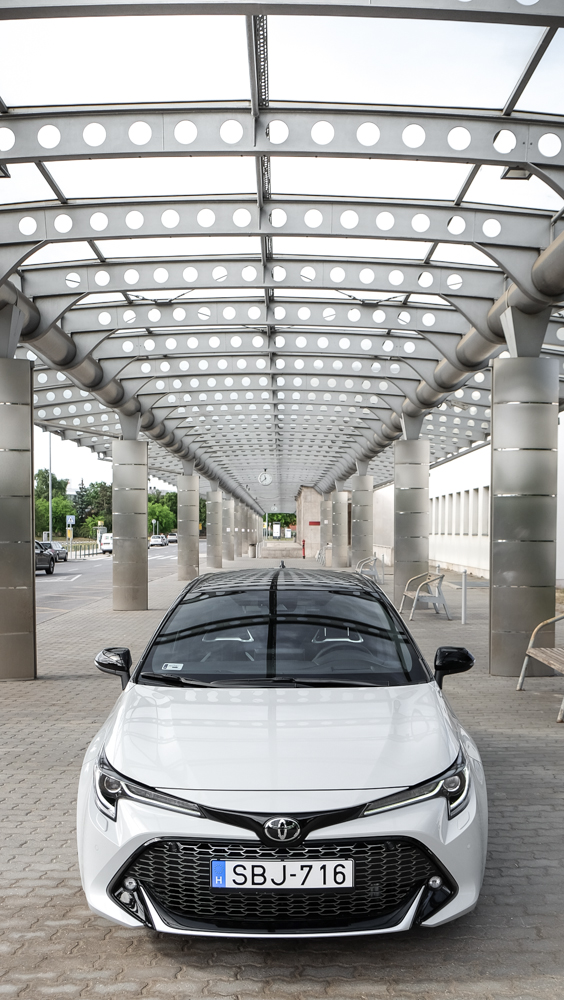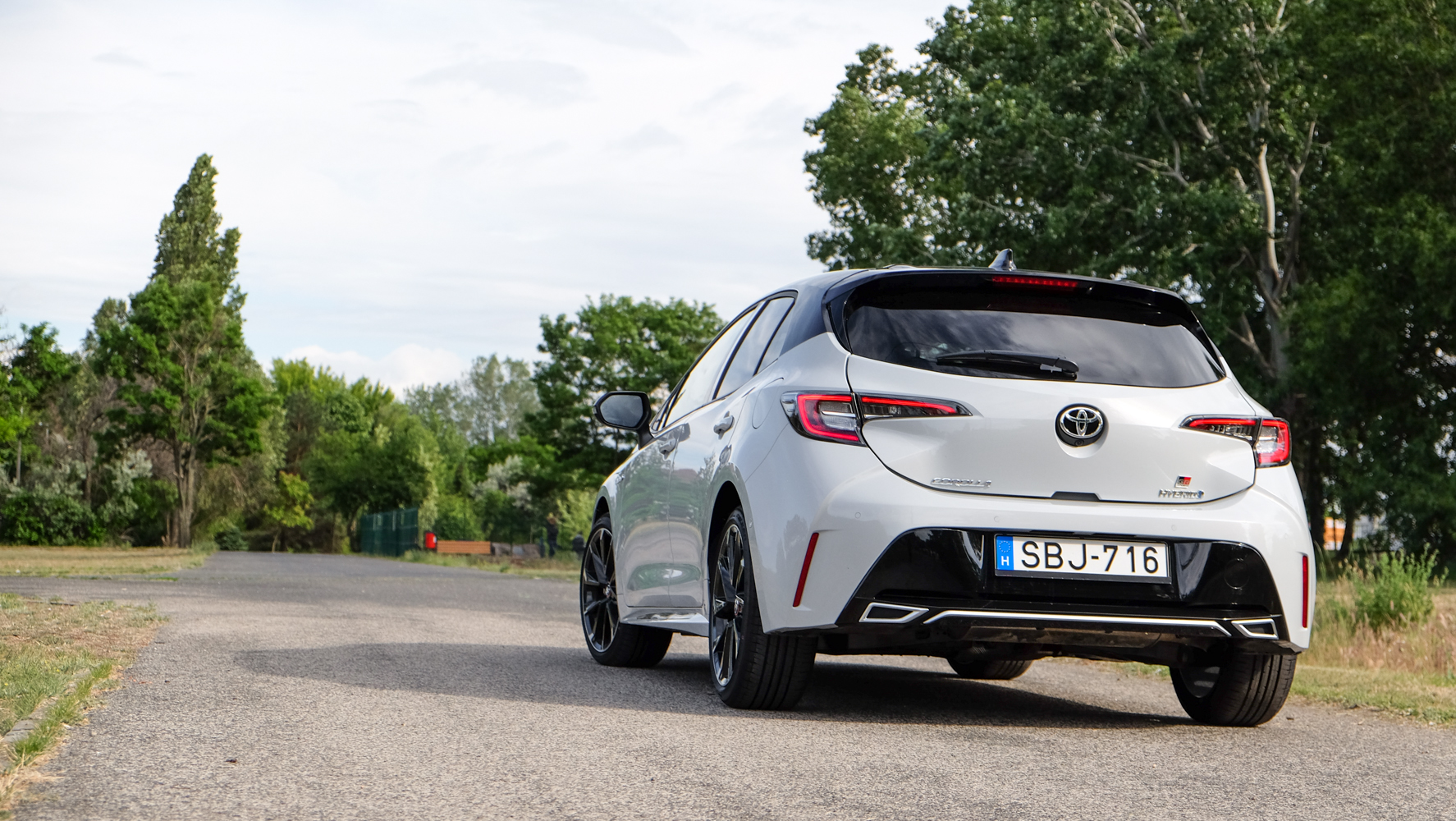 Sokkal kiszámíthatóbb, mint az 1,8-as, a reakcióidejük pedig össze sem hasonlítható. 184 lóerős, és a gázpedál lenyomására nem akad fenn a fordulatszám, ha elengedjük, azonnal visszazuhan, nincs meg benne az a kellemetlen nyúlós érzet. Épp elég pörgős, dinamikus gyorsítást művel, 7,9 másodperc a 0-100, ami szerintem teljesen korrekt. Vannak programozott fokozatai a váltónak, de legalább annyira viccesnek tartom, mint a kamu kipufogót, semmi szükség rá, de azon nem változtat, hogy a hajtás nagyon hatékony. 5,2 literes fogyasztással zártam a teszthetet, a legszebb viszont egy bő 100 kilométeres szakaszon mért 4,4 literes fogyasztás volt, ami remek érték ettől az autótól. Könnyen tanulható vele a hibridezés, és az eddigi kellemetlen élmények sem fogják elvenni tőle a kedvet, mert ez már úgy működik, ahogy kell. Gondozásmentes, persze olajcserét fog kérni a benzinmotor, de egyébként minden kritikus alkatrésztől mentes egy ilyen hibrid, amire sokat költhetnénk később. A hibrid rendszerre egyébként 10 év garanciát vállal a Toyota, ha esetleg még mindig van, aki félne és túl bonyolultnak tartaná a hibrideket. A GR Sport egy mókás csomag, ami épp csak pár aprósággal, de rendesen feldobja a külsőt. Passzol hozzá, túlzottan is. Ezzel a kormányzással, futóművel igazán elbírna egy igazi sportmodellt is a Corolla, de a Toyotánál sajnos más a hitvallás.5,0 literes fogyasztást nem nehéz kihozni belőle, vezetni nagyon jó, és a hosszú élet ígéretét hordozza