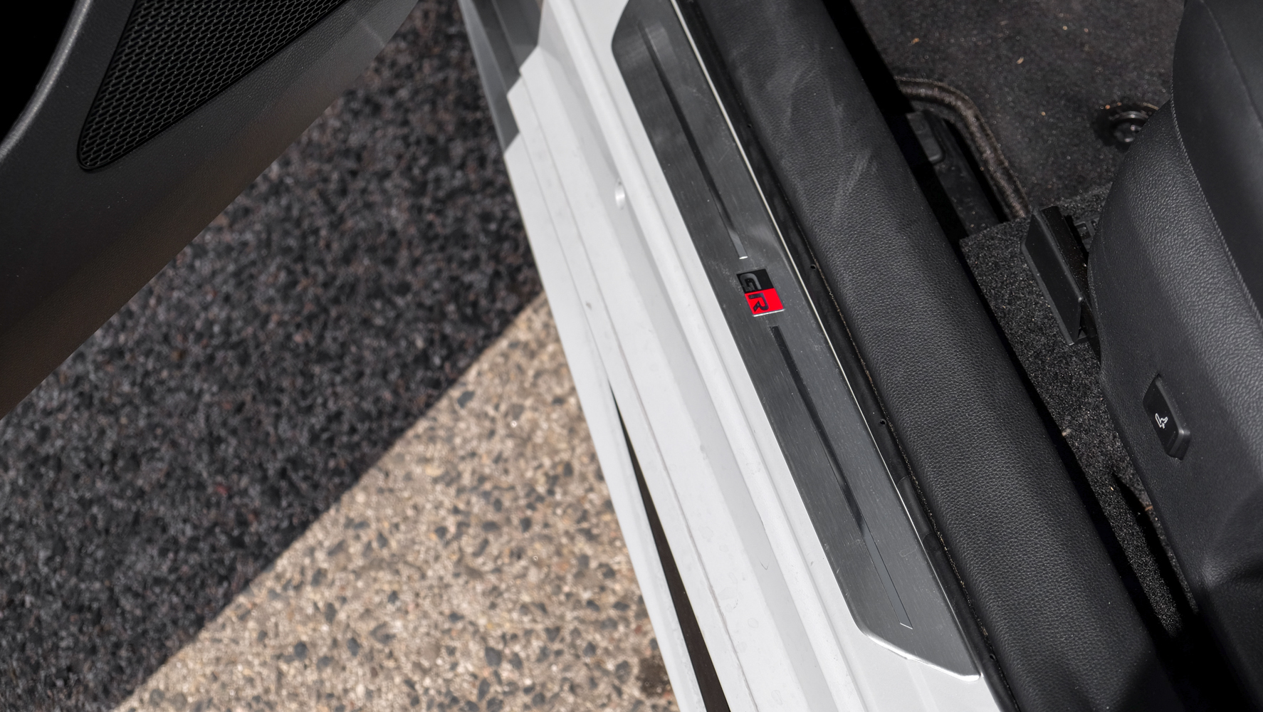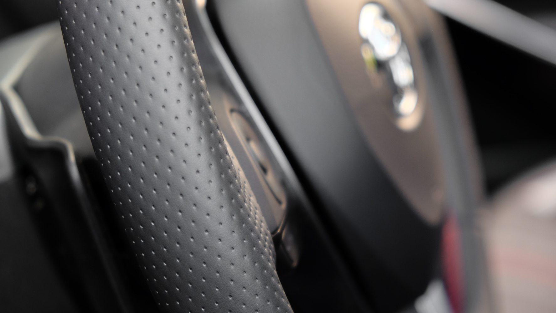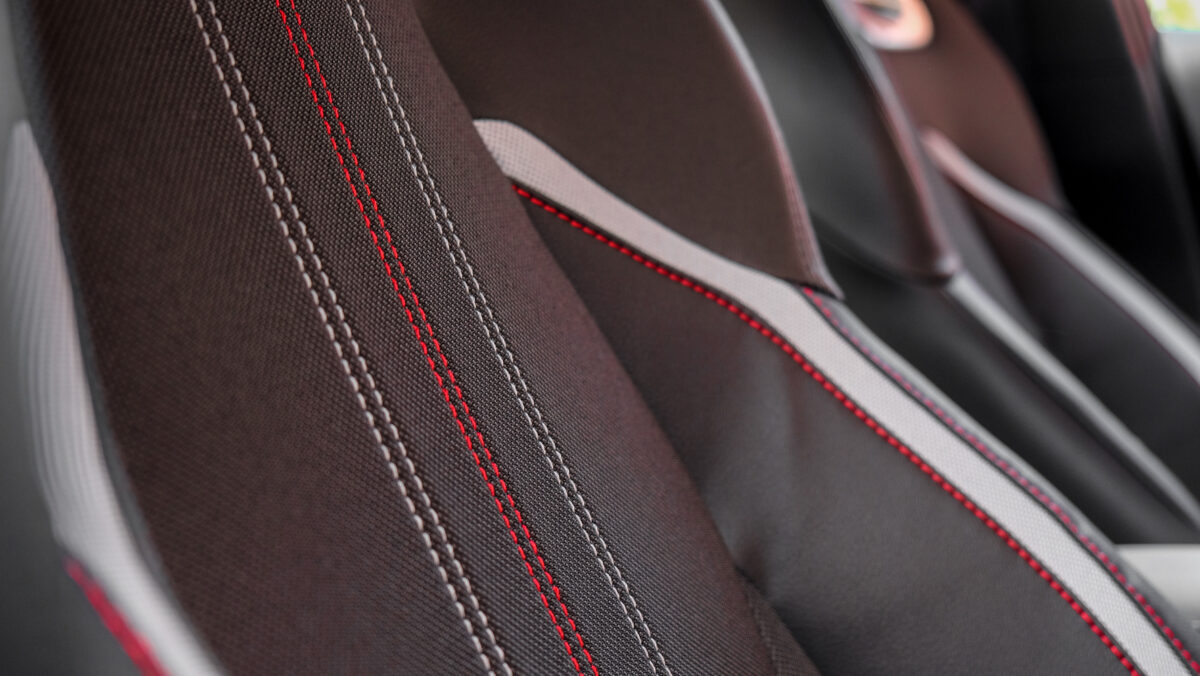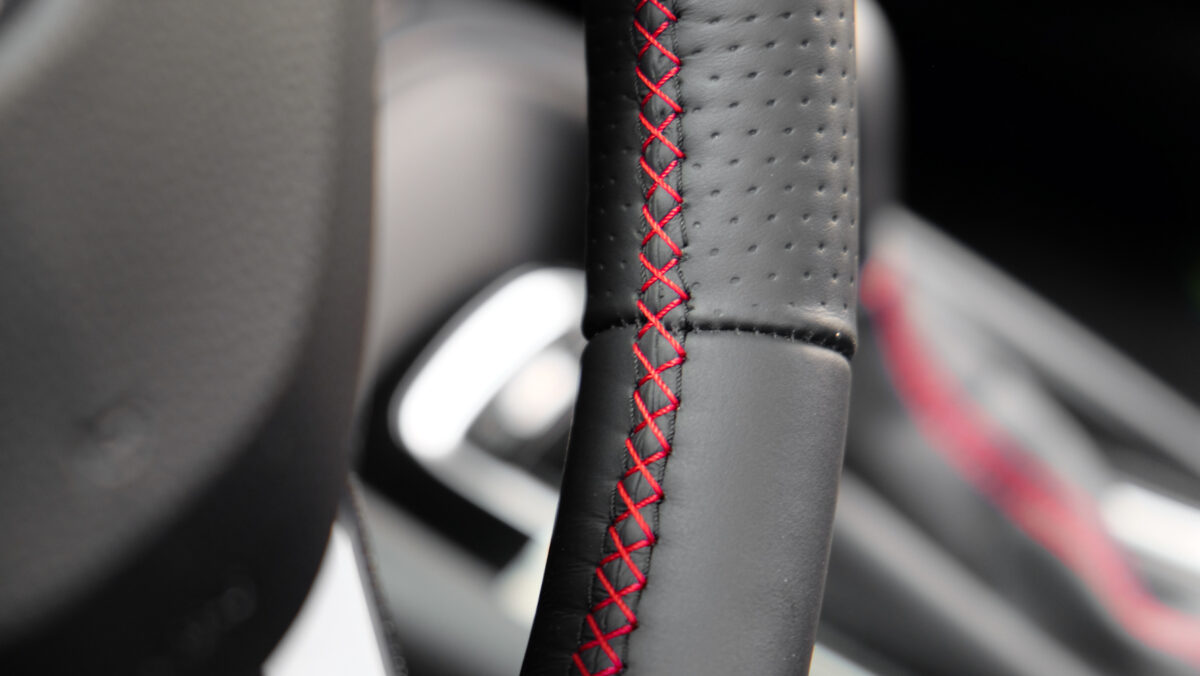 Perforált bőrbe húzzák a kormányát, pirossal varrják és fehér-szürke betéteket kapnak az ülések