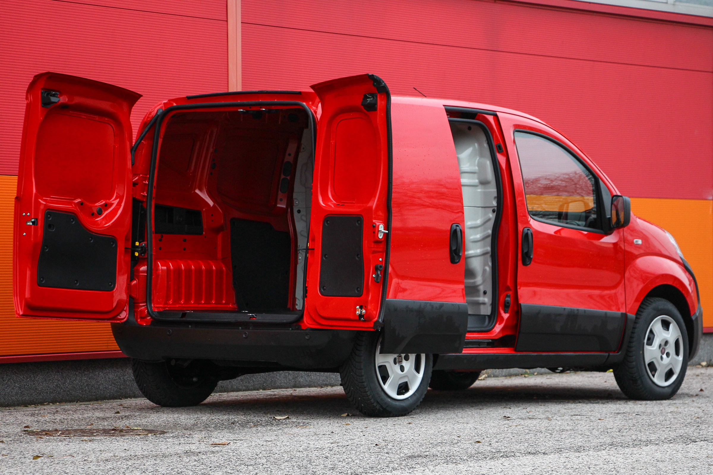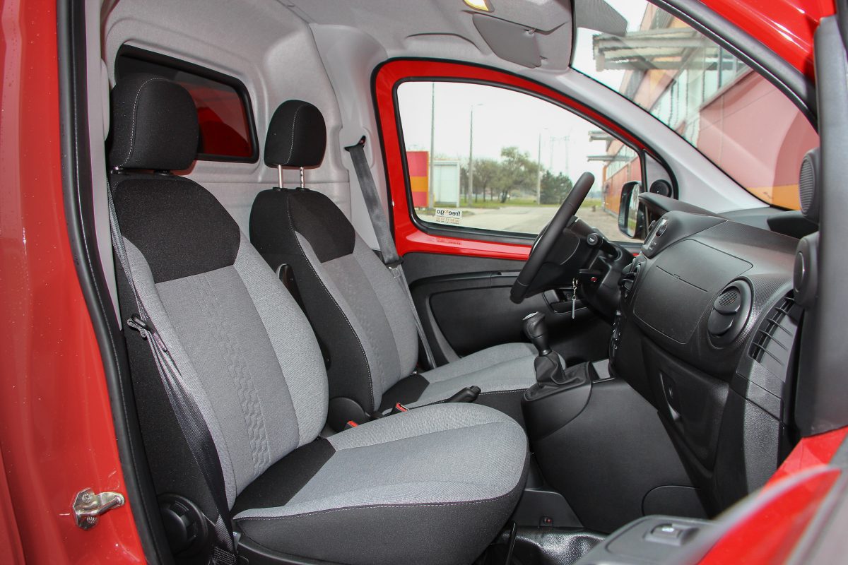 Praktikus városi kisteher. Nem a kínálat legkisebbje, ugyanis Pandából is van Professional, de a Fiorino az első lépcső, ami rendes tolóajtós, akár mindkét oldalon. Tesztautónk csak a jobb oldalra kapott ilyet, általában elég is, különlegesebb helyzetekben van csak szükség, vagy egyáltalán alkalom használni a túlsó oldalt. Amire jellemzően az ilyen méretű kisteherautókat használják, az a városi, nem ritkán egészen belvárosi áruszállítás, ahol sok esetben csak az út szélén lehúzódva lehet megállni, így rakodásra is csak a jobb oldal alkalmas. Ugyanakkor egészen szélesre tárható a két hátsó, felemás ajtó, a Fiorino bendője pedig gond nélkül elnyel akár egy raklapnyi árut.