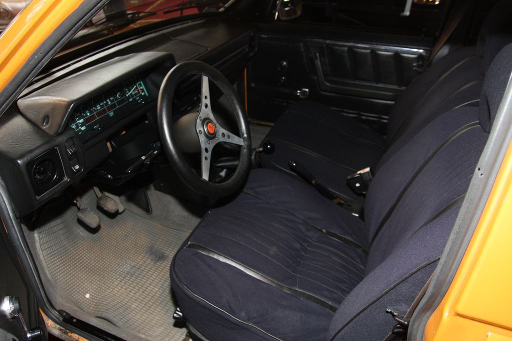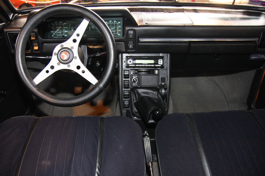 Szögletes műszerfal, ebben az átépített példányban Lada-sportkormánnynal