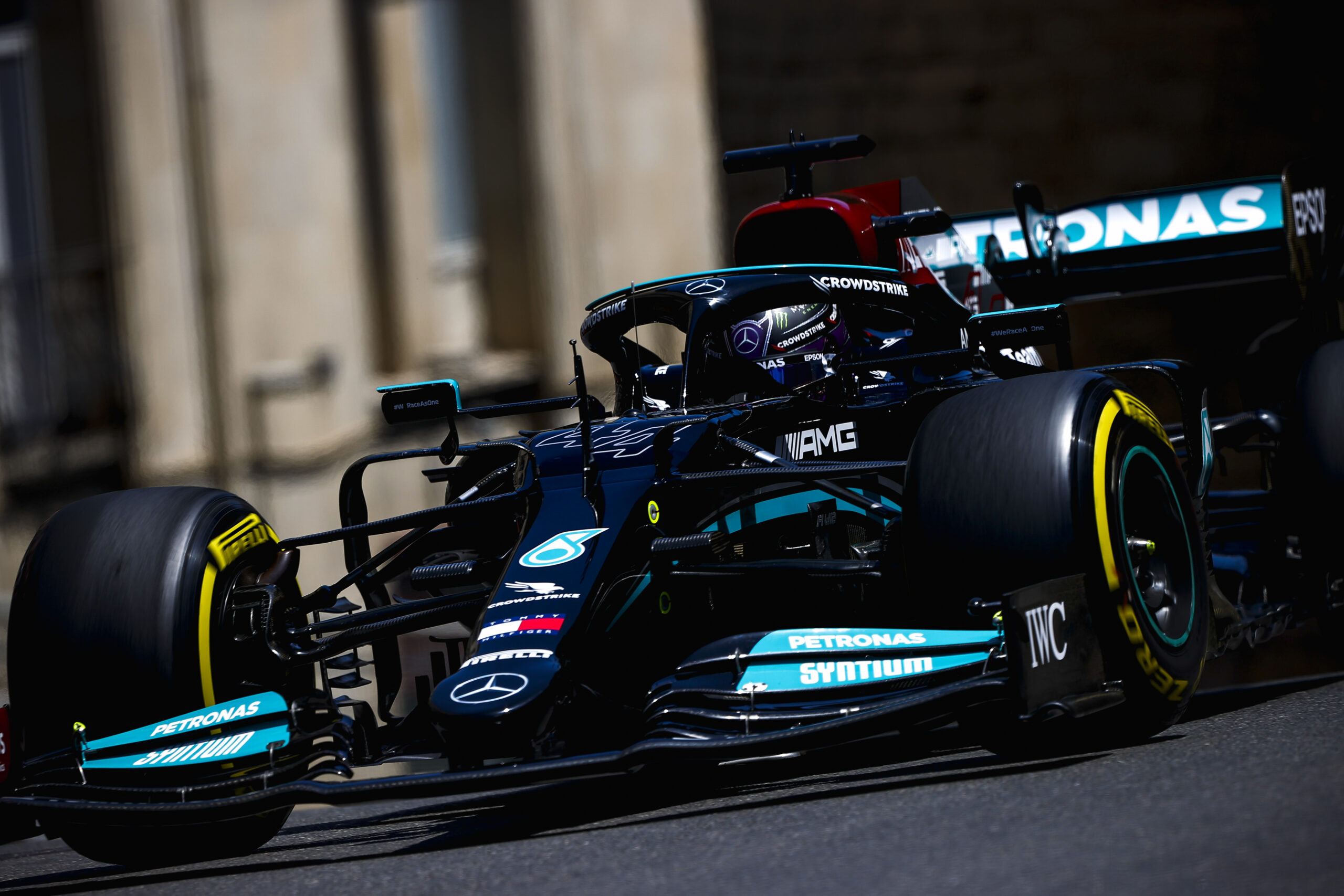 Lewis Hamilton a futam végén, az újraindításnál megpróbálta megelőzni Pérezt, ám kicsúszott és az utolsó helyre tért vissza, így az Azeri Nagydíjon nem szerzett pontot