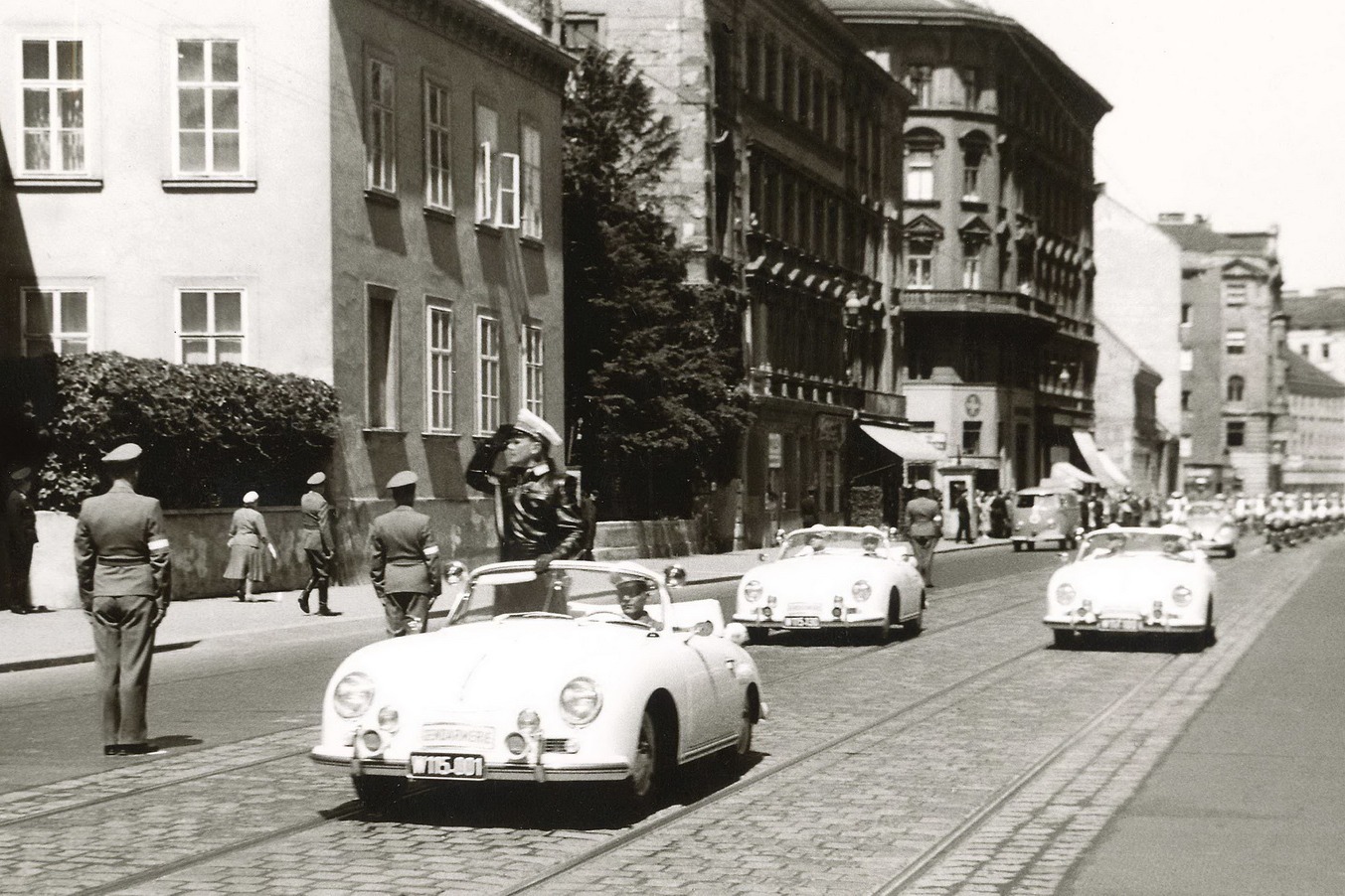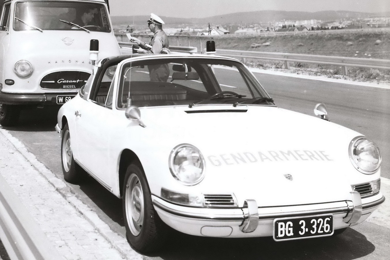 Már a '60-as években is használt az osztrák belügyminisztérium Porschékat, valamint a Volkswagen többi termékét, mint ahogy a képen hátrébb látható T1-es Transportert és Bogarat is