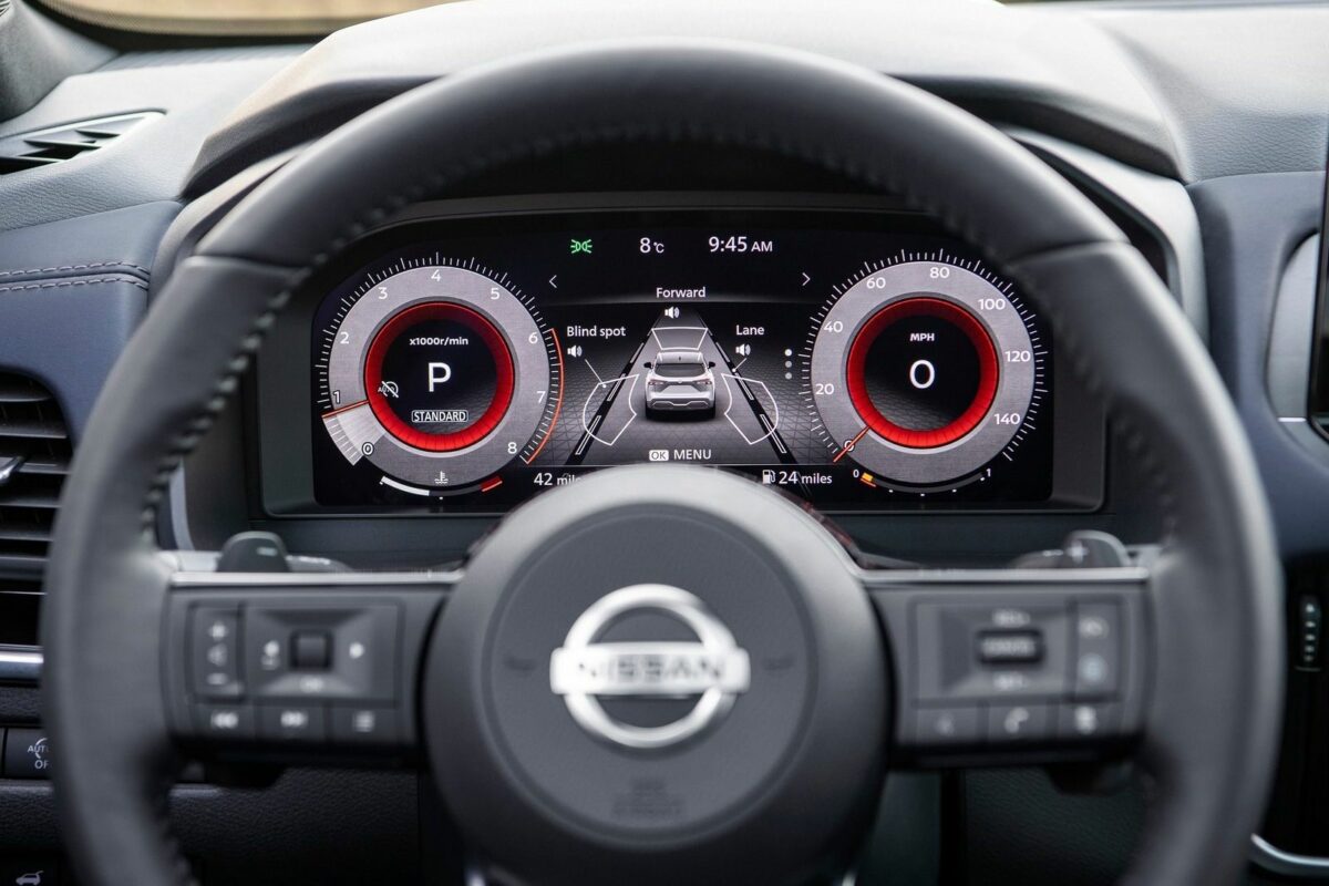 A sofőr előtt a 12,3 colos, teljesen személyre szabható digitális műszerblokkot 10,8 colos head-up display is kiegészíti, a ProPILOT legfrissebb verziója már a sebességhatárokhoz is alkalmazkodik