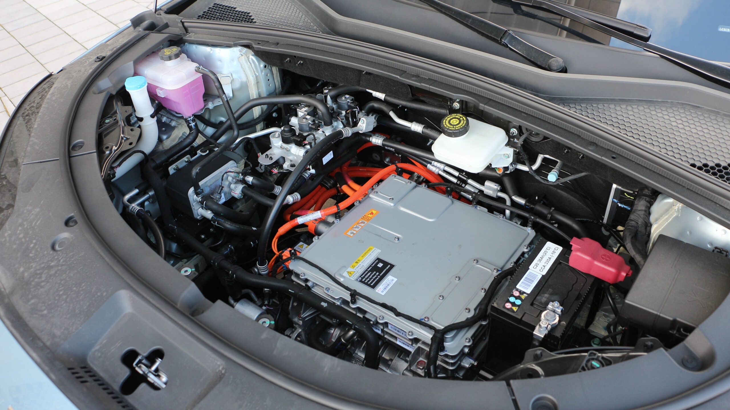Az akkumulátort az autó alá pillantva könnyen ki lehet szúrni, nem takarták el műanyag elemekkel a lítium-vasfoszfát telepet, amely a márka szerint nem csak az energiát tárolja, de a karosszériamerevséghez is hozzájárul