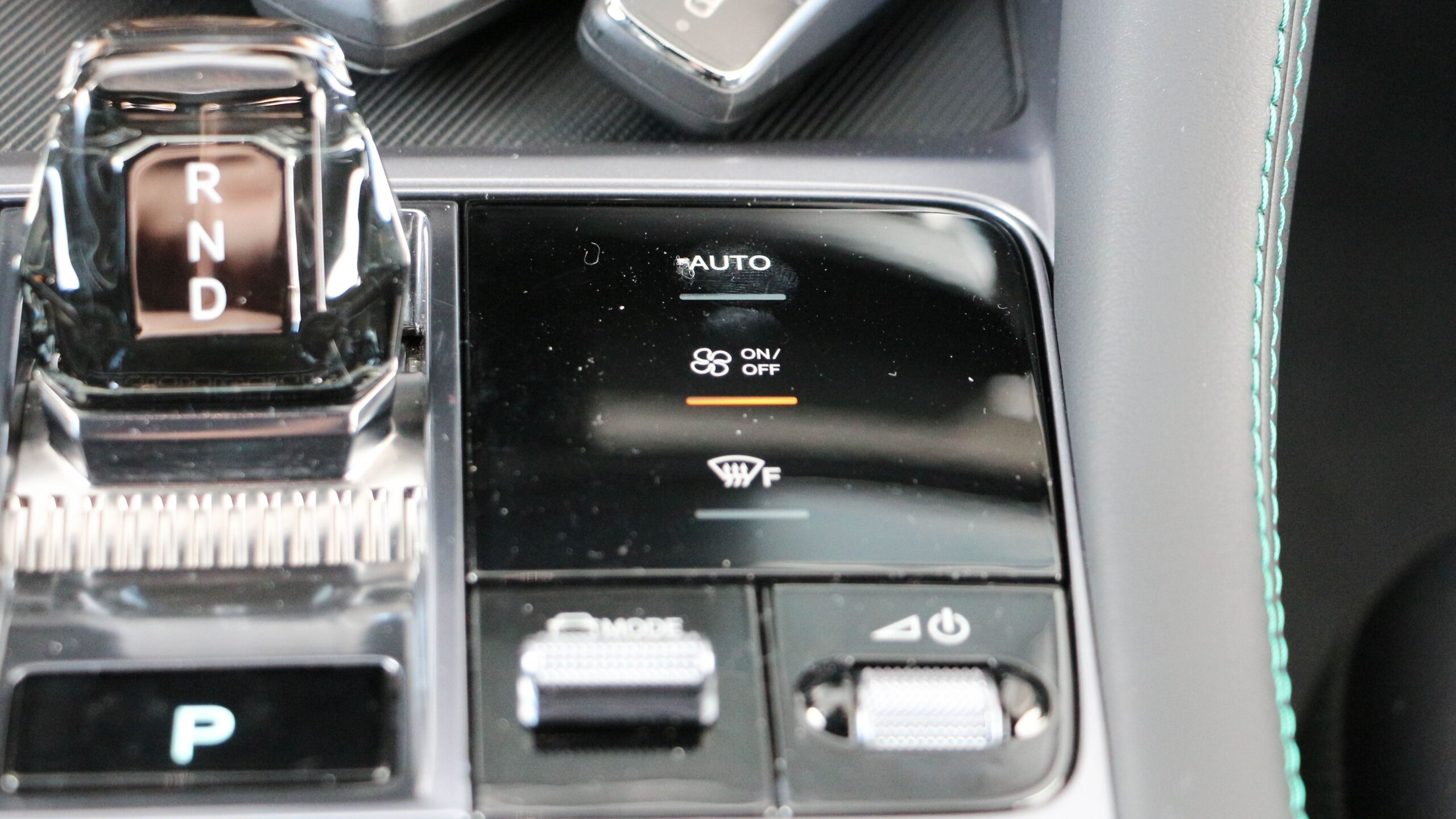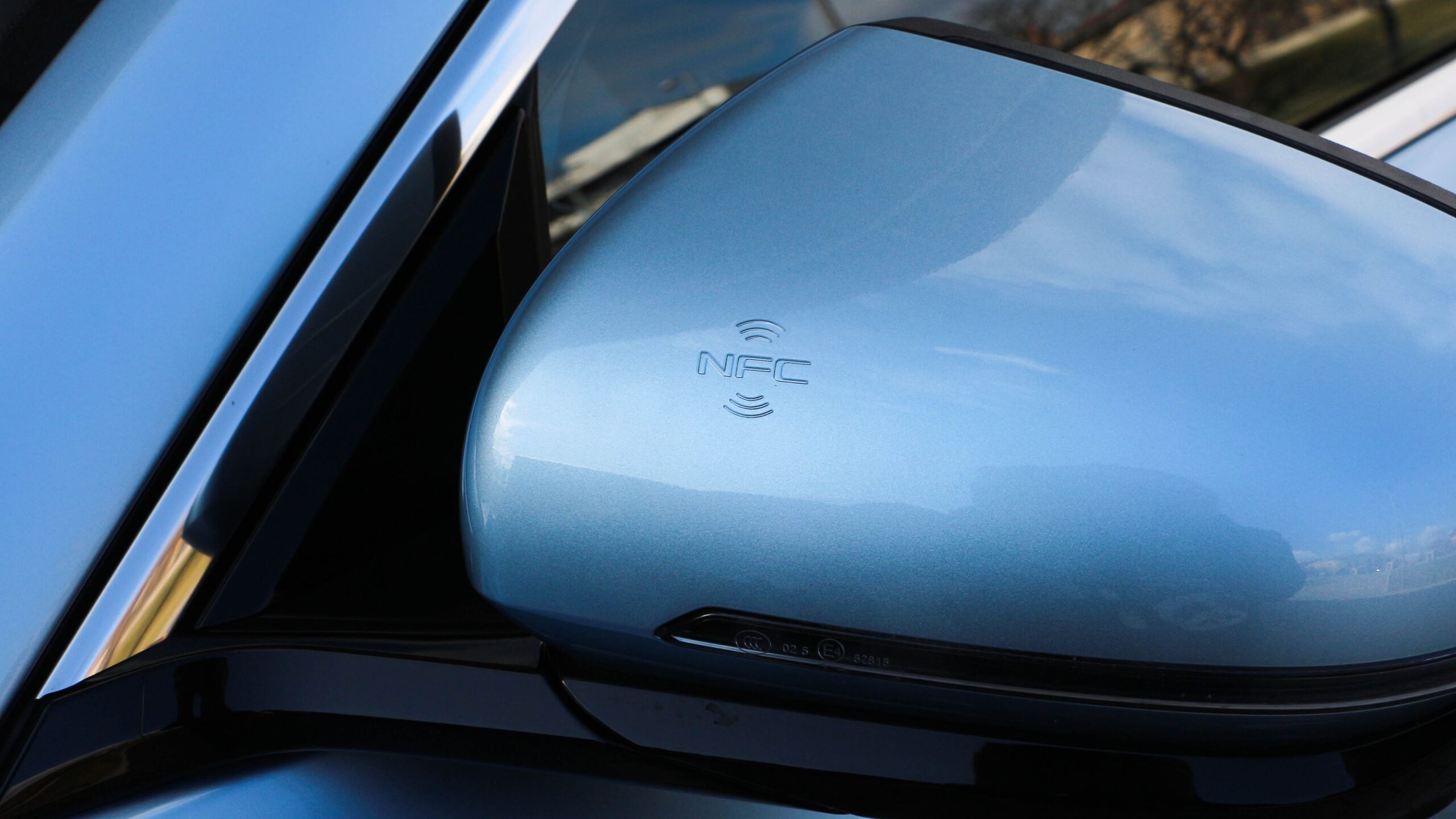 A visszapillantón az NFC felirat nem csak dísz: applikációval is nyitható, zárható az autó, illetve a töltöttségi szint, és a klíma is elérhető telefonról