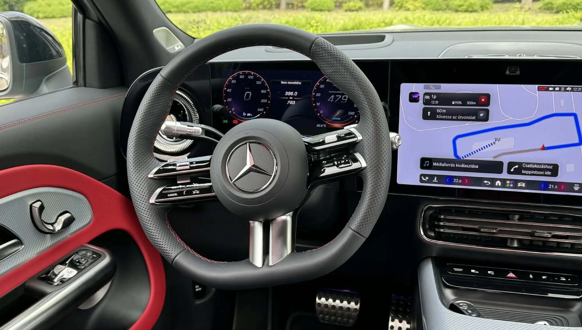 Felszereltsége gazdag, sőt nagyon gazdag is lehet mind kényelmi, mind biztonsági extrák tekintetében, attól függően mennyire hajlandó mélyen a az ügyfél. Kiemelném a negyedik generációs MBUX infotainment rendszert, amely a Unity játékmotor szoftver valós idejű grafikai képességeire épül, és olyan Zero Layer felületet kínál, amely mindig a legfontosabb információkat és kontextusfüggő javaslatokat helyezi előtérbe. Az alkalmazások okostelefon‑szerűen, egyedi névvel ellátott mappákba rendezhetők, az appnézetből egy mozdulattal visszatérhetünk a Zero Layerre, a kezelési logika kifejezetten az érintéses, gesztusalapú használatot részesíti előnyben.