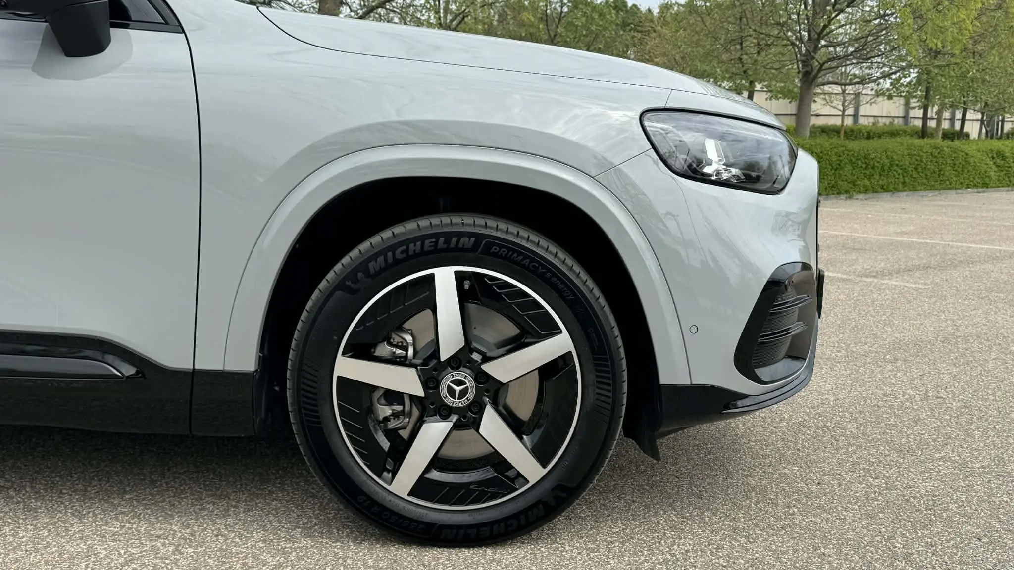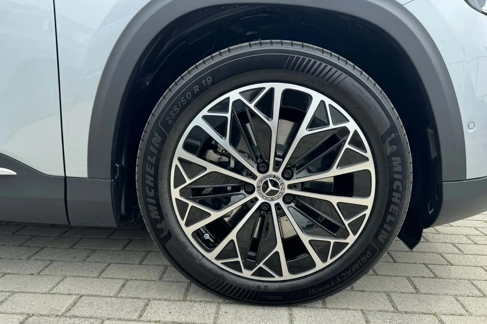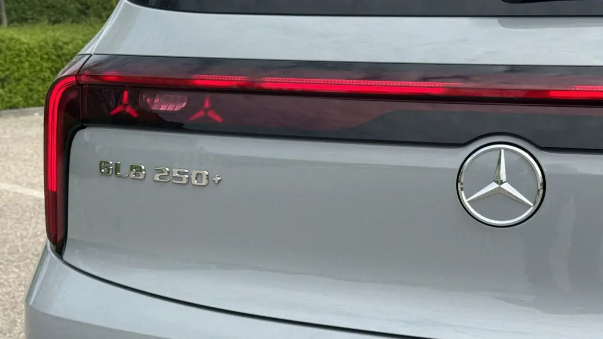 Büszke a márkajelzésére a GLB is, hiszen tovább viszi a Mercedes-Benz aktuális formanyelvének egyik leglátványosabb elemét, vagyis elemeit: a mindenfelé felbukkanó csillag motívumokat. Természetesen ott a két nagy, központi embléma elöl és hátul egyaránt, viszont kapunk még a fényszórókban, a hátsó lámpákban és a hűtőmaszkon is. A villanyhajtású változaton, ahol a maszk igazából egy "pajzs", egészen pontosan 84 darab világító csillagocska látható. A dizájn összességében látványos, minden ízében Mercedes és kimondottan egyterűs.