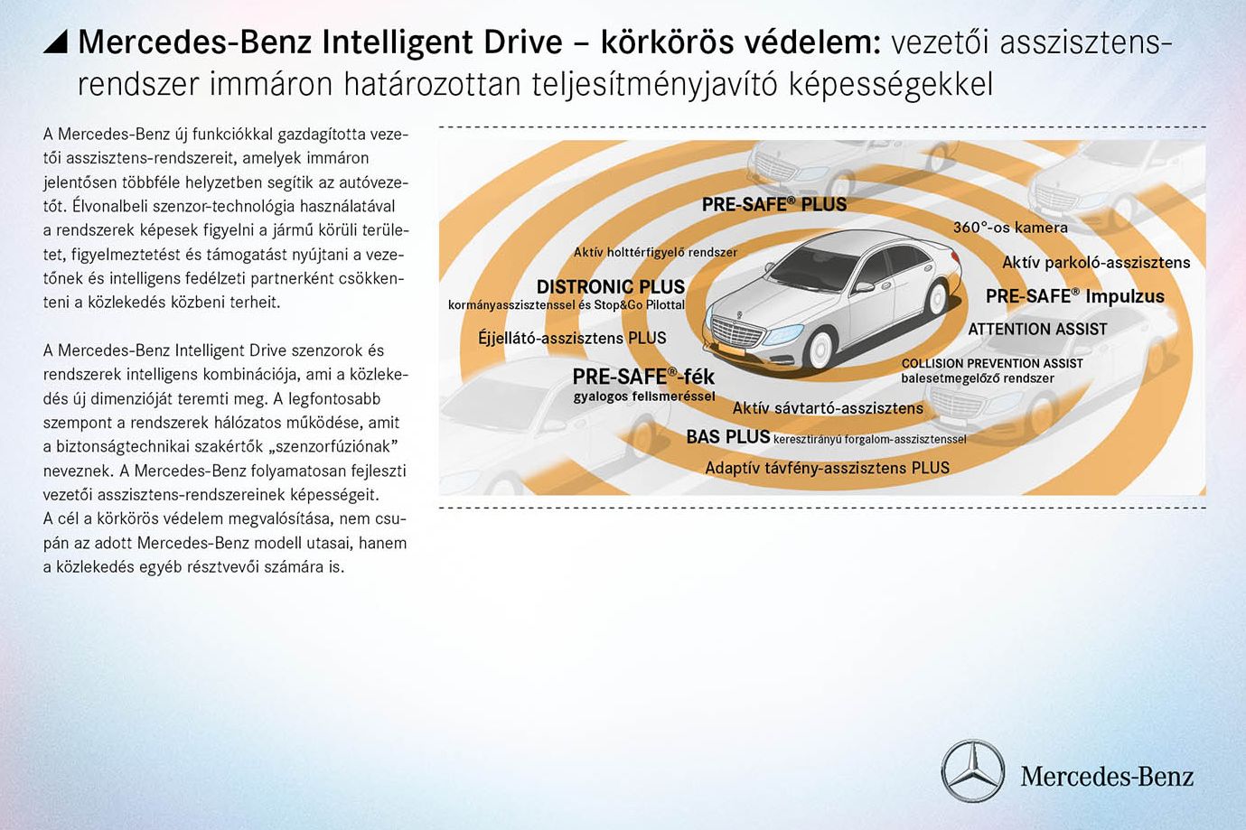 Az S- és az E- után az új C-osztályban is megjelenő megannyi elképesztő sofőrsegédről számos szuper grafika és leírás van a galériában, de terhelésélettani szakértői véleményestül itt is olvasható, mit ad a körkörös védelem