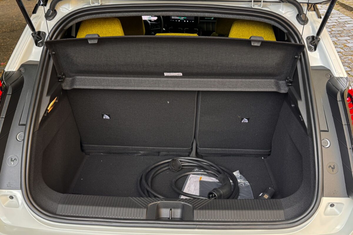 De említhetném még a vezetőülés háttámlájának zsebéből kikandikáló címkét, rajta az 5-ös generációival, a rúzsról mintázott bajuszkapcsolót, vagy épp a hűtőnyílásra hajazó kijelzőt a motorháztetőn, amely jelzi a töltöttségi szintet. Sőt, még bagett-tartó fonott kosárka is rendelhető az utastérbe. Ahol egyébként elöl kényelmesen elhelyezkedhetnek az utasok, széltében sem szűk, és azért még hátul is elférnek különösebb feszengés nélkül a felnőttek. A csomagtér sem használhatatlan, hiszen alaphelyzetben 326 literes, viszont elöl nincs rekesz, kell a hely a villanymotornak.