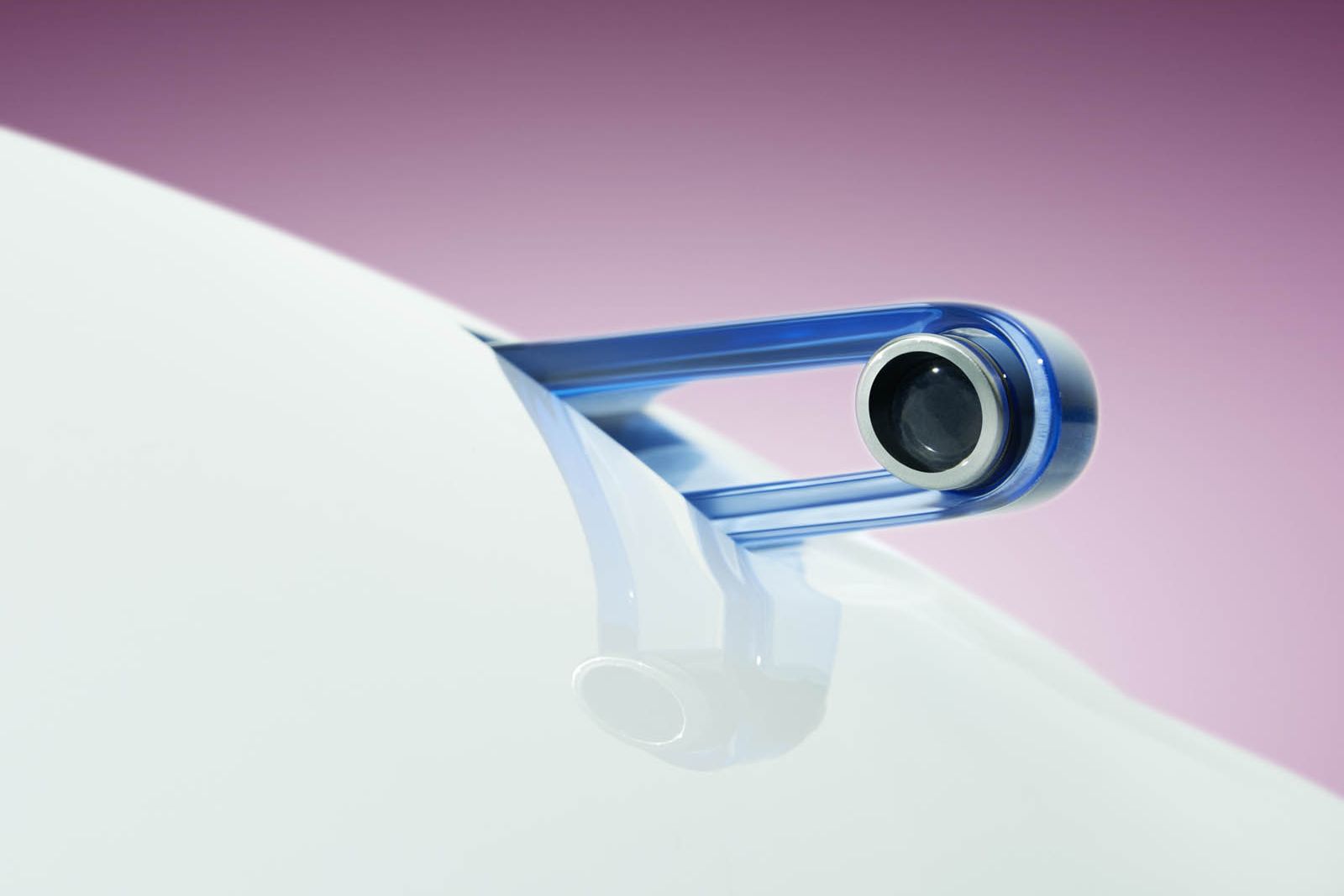Hátsó kerekei közelebb kerültek egymáshoz, tükör helyett kamerák pillanatnak hátra, abroncsai kék mintát kaptak