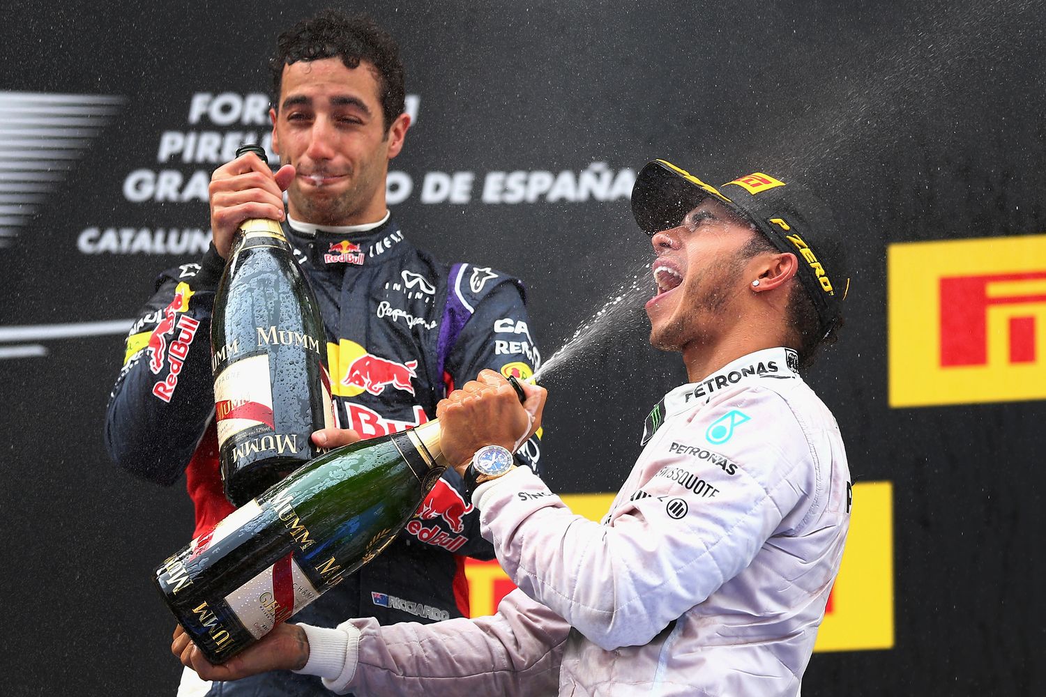 Az először dobogós Ricciardo (úgy, hogy nem vették el tőle az eredményt, mint Melbourne-ben) elismerte, hogy semmi esélye nem volt a Mercedesekkel szemben, számára unalmas volt a verseny, de Monacóban talán ők ketten fognak vívni (a bronzért) azzal a Vettellel, aki a megőrzött friss szett szombati abroncsokon szép kis feltámadást produkált a 15. helyről. Szerinte a (70-80 lóerővel izmosabb) Mercedes-motor fenomenális, és Hamilton, illetve Rosberg is olyan jó pilóta és olyan jó munkát végez, hogy felesleges a Red Bull lemaradása miatt keseregni. A cél, hogy felzárkózzanak, s megnehezítsék a bajnokaspiráns dolgát. Szóval konkrétan nem hangzott el, de ezt az évet kvázi odaadták a Mercedesnek...
