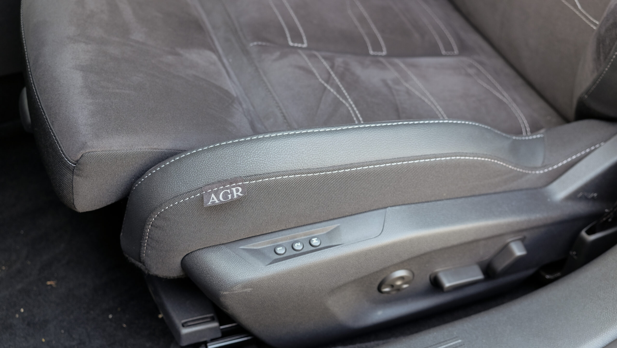 Alapáron AGR, a GS Line esetén AGR sport üléseket kapunk, a tesztautó Alcantara kárpitos, elektromos állítású és memóriás vezetőülése nagyobb kategóriákban is gond nélkül megállná a helyét