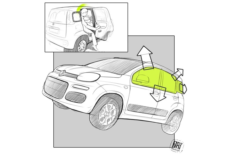 Szemből nézve barátságos, mosolygós arcra hajaz a Fiat Panda, hátulról nézve viszont egy szumós masszívságát sugallja. A hátsó oldalablak nem csak dizájnelem, a tervezők funkcionális szerepet is osztottak rá: javítja a keresztirányú kilátást