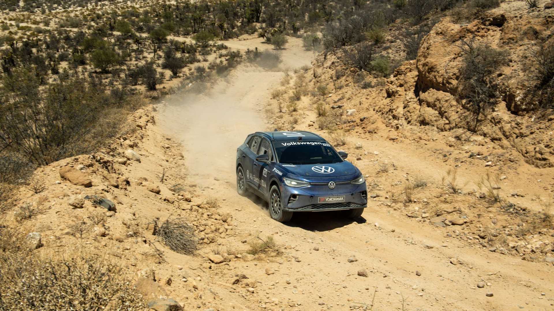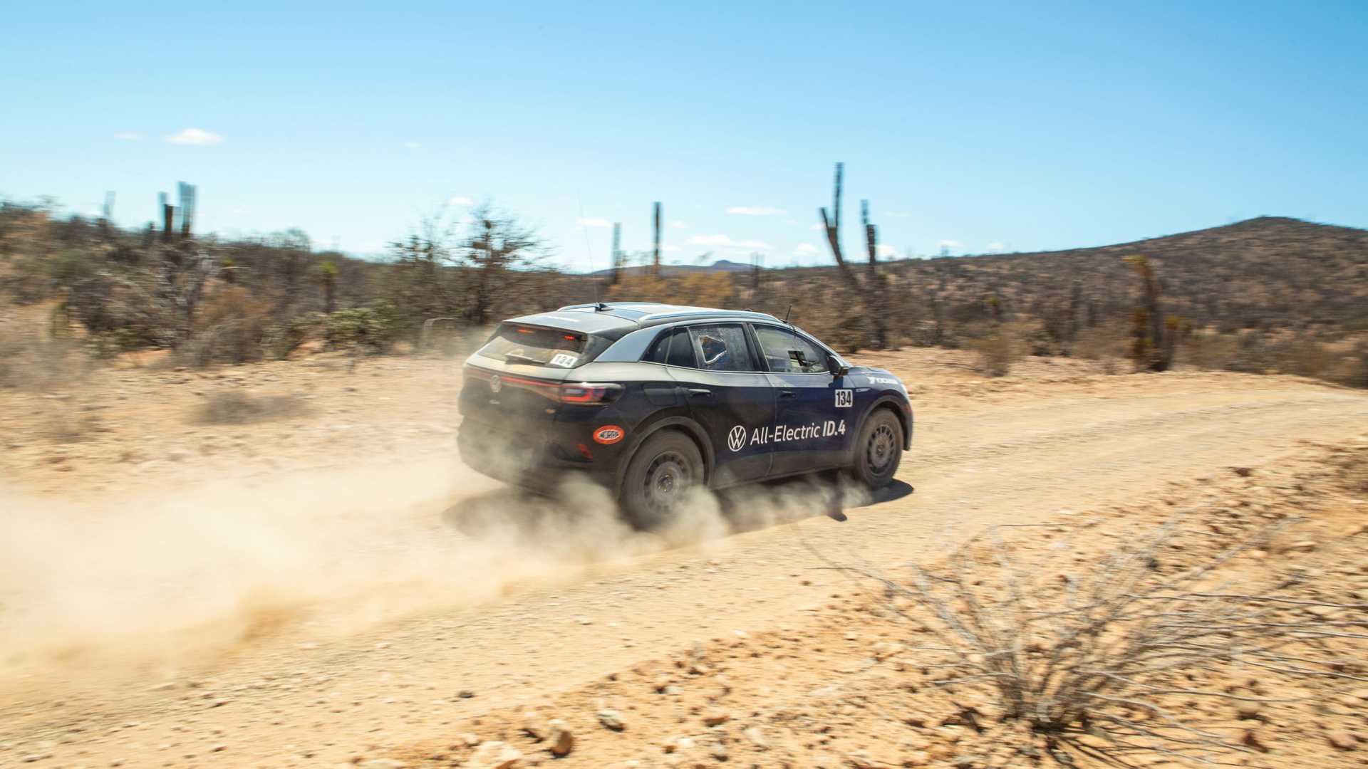 A 90 autóból mindösszesen 64 jutott el a célig, a versenyzők 29 százaléka kényszerült feladni. A teljesen gyári hajtáslánccal szerelt, 201 lovas, hátsókerekes, 82 kWh-s ID.4 mindösszesen bukókerettel, kagylóülésekkel, néhány plusz műszerrel, kartervédővel és egy terepre optimalizált futóművel megspékelve probléma nélkül teljesítette a távot, ráadásul a gyári menetstabilizátort is használva. Az 53-269 kilométeres szakaszokból álló verseny jelentős részén Tanner Foust vezette az ID.4-est, két szakaszt pedig Emme Hall keze alatt teljesített a kocsi. Mindez valahogy így nézett ki élesben: