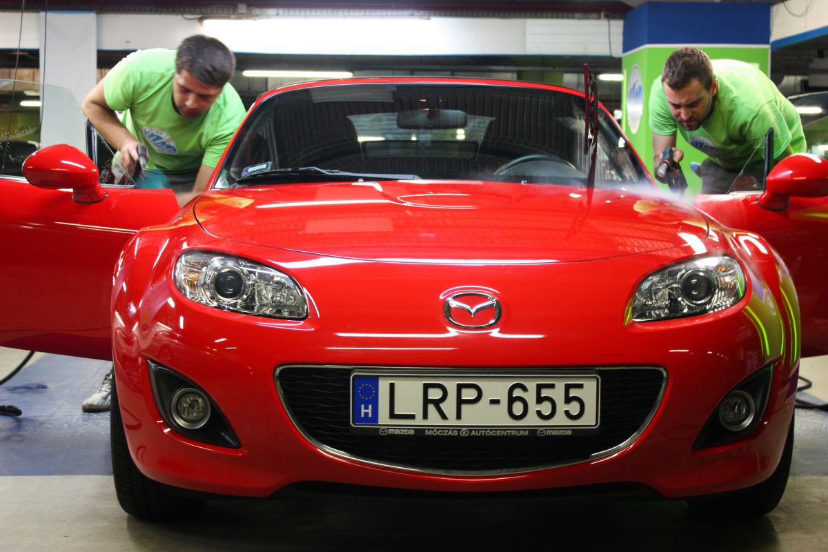 Múlt héten írtunk róla, hogy kollégánk Mazda MX-5 NC-jét facelift utáni NC-re cserélte. Fene a jó dolgát! A két autót egymás mellé téve egyértelmű volt, hogy megérte az újabb verzió a tetemes felárat. Miként a legtöbb hazai vásárló, természetesen ő is új autót várt el a frissebb példánytól, amit gondos gazdától csaknem meg is kapott. Ám a friss szerzeményt a teljes tökéletességhez azért be kellett utaljuk mosópartnerünkhöz.