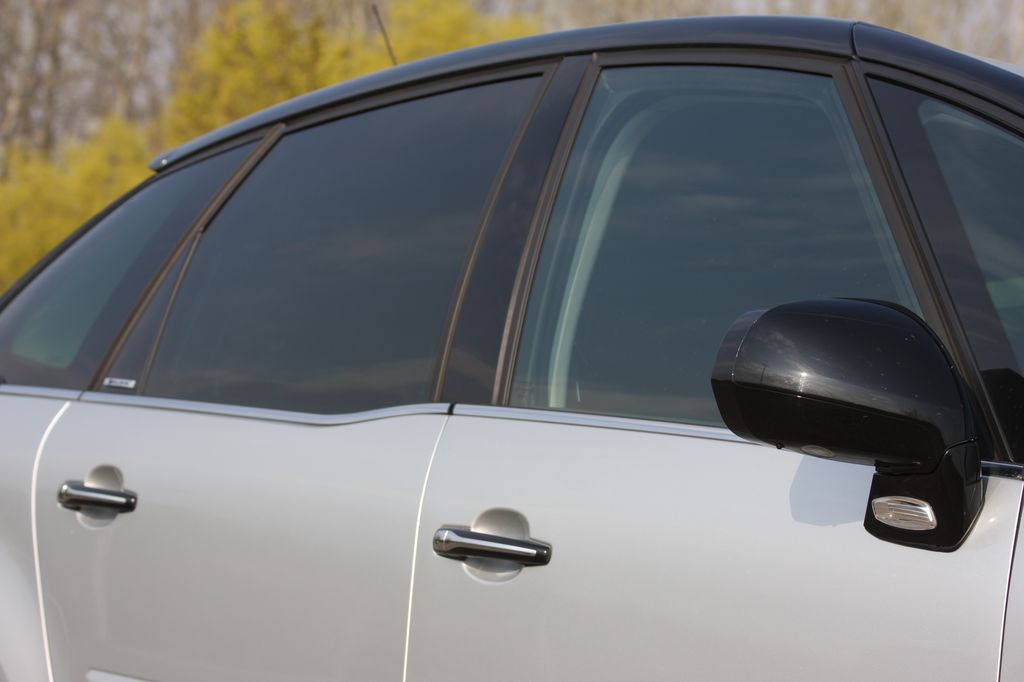 Jól látható, hogy a középső C oszlop után az üvegek extra sötétítést kaptak - a fénytől való védelem jól is jön, mert ahogy a reklámszlogen tartja, a C4 Picasso valóban fényterű. Innen nem igazán látszik, de a pótkereket kívülről erősítették az autó aljához