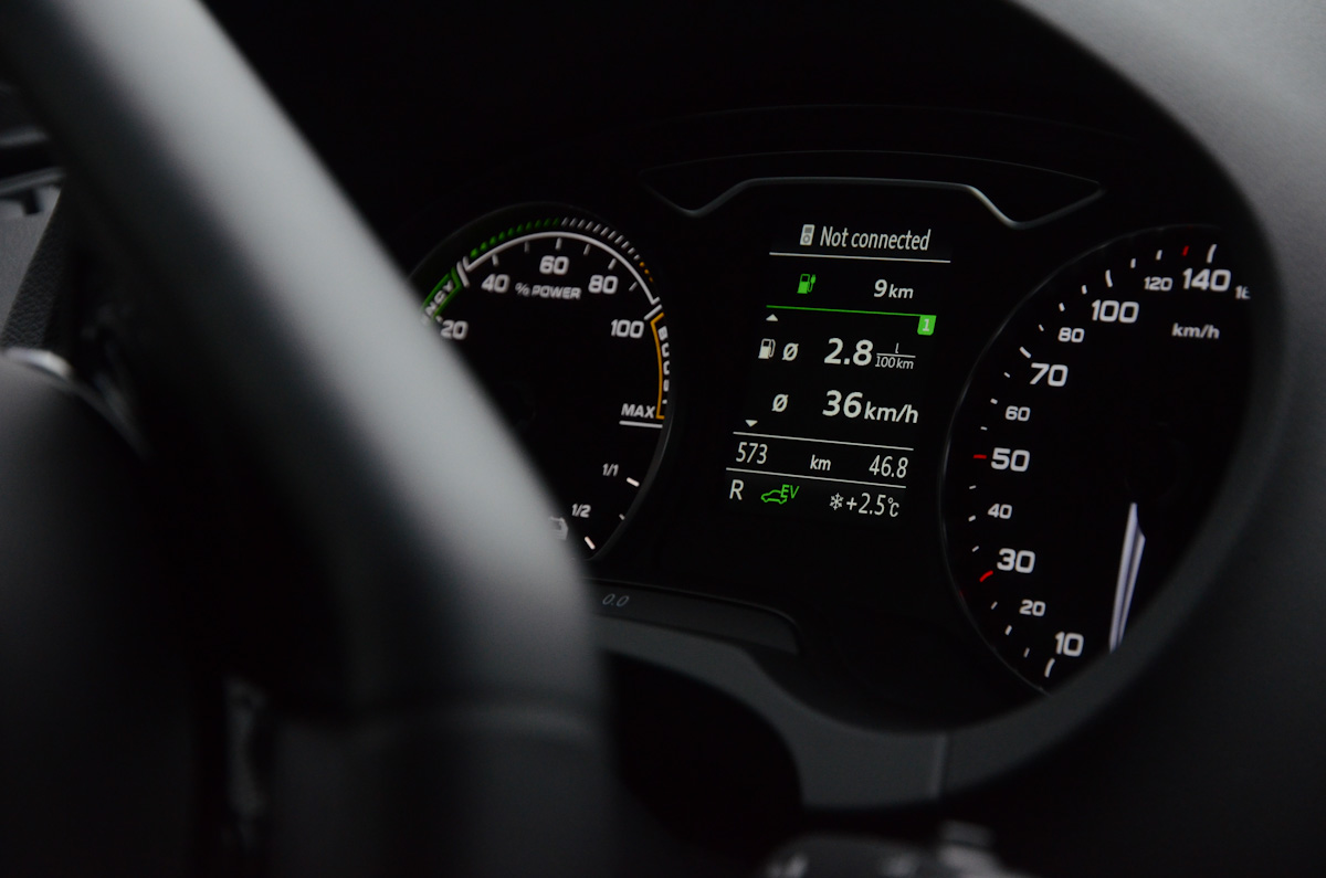 Az e-tron logó legfeljebb 222 km/órával utazhat. Az A3 e-tron az Audi első konnektoros autója, akár 940 kilométeres hatótávval. 1,5 literes ciklus szerinti átlagfogyasztása az 50 kilométeres emissziómentes hatótávval értendő, de nélküle is mesés, 3 l/100 km az 1.4 TFSI katalógus szerinti étvágya
