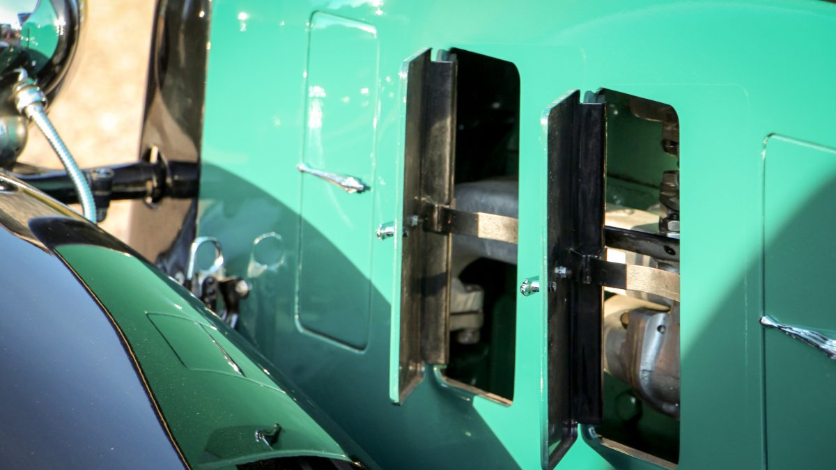 Az akkori forgalomhoz elég volt egy apró tükör, az is csak a bal oldalra, a motor hűtését nyitható kis ablakokkal is segítették