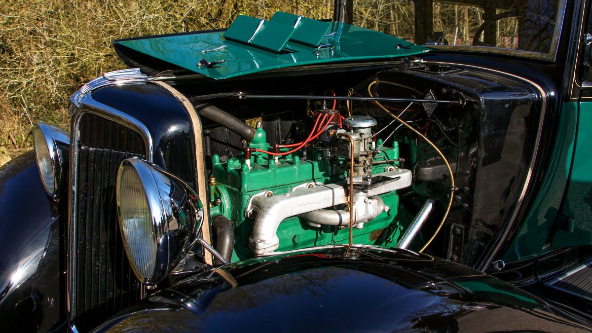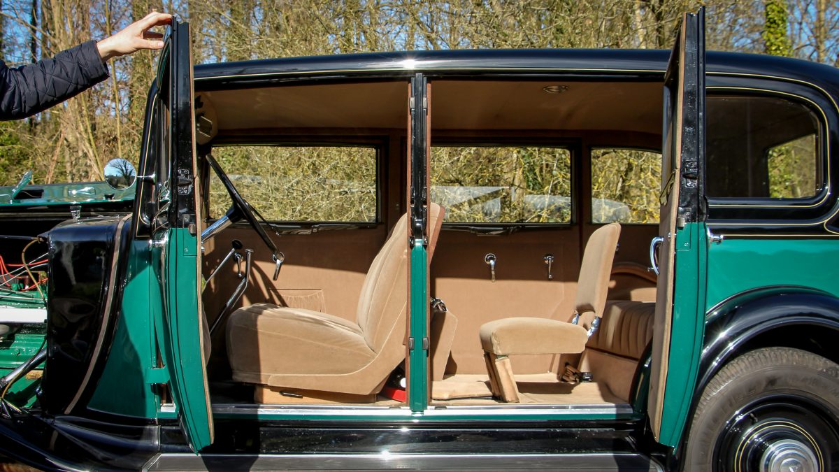 A Renault az 1930-as években már masszívan alkalmazott alumíniumot autóinál. A Vivastellán vastagon találunk belőle a motor alkatrészei között, de a karosszérián is, például az ajtókat. A hatalmas szekrényajtók egymás felé nyílnak, könnyedén, a kilincseket fordítani kell, mint egy bejárati ajtón. Lazítok franciásan megkötött sálamon, mert már így is alig kapok levegőt és behuppanok az első ülésre. A hatalmas kormánykerék alja az ölemben, a tetejéért már nyújtózkodnom kell, az ülés állíthatatlanságára való tekintettel nem is rossz az egyetlen ülhető pozíció.