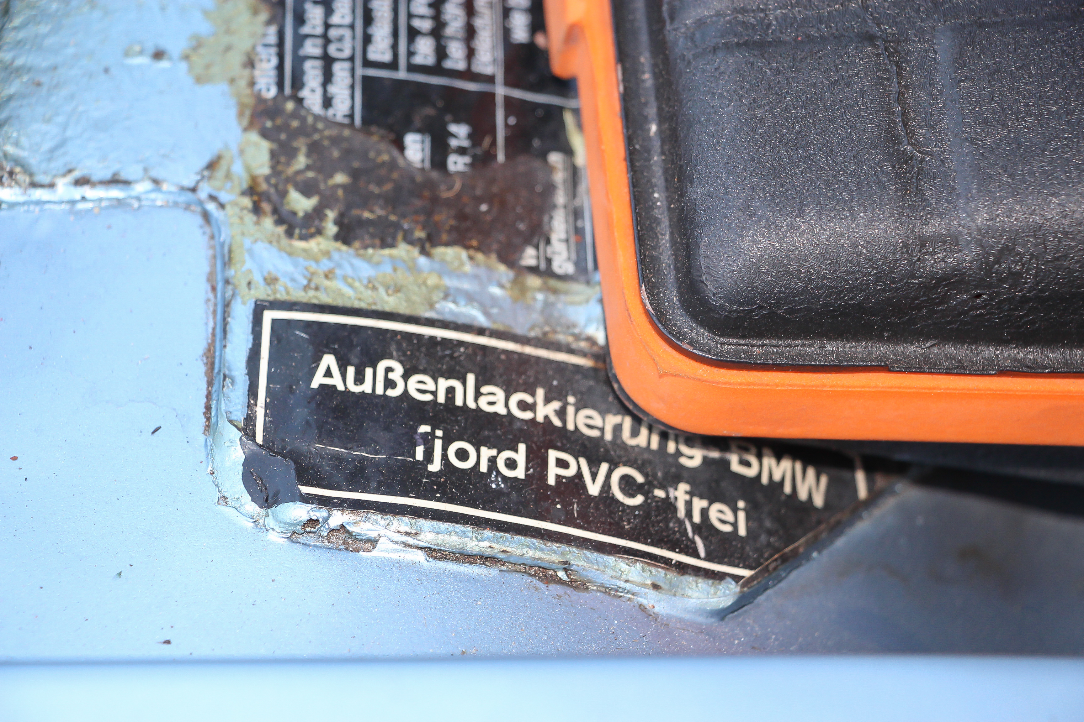 A csomagtér környékén a legérdekesebb a 37 éves gyári matrica a lenyitható szerszámkészleten és a hátsó tengely fölött domborodó 100 literes túratank