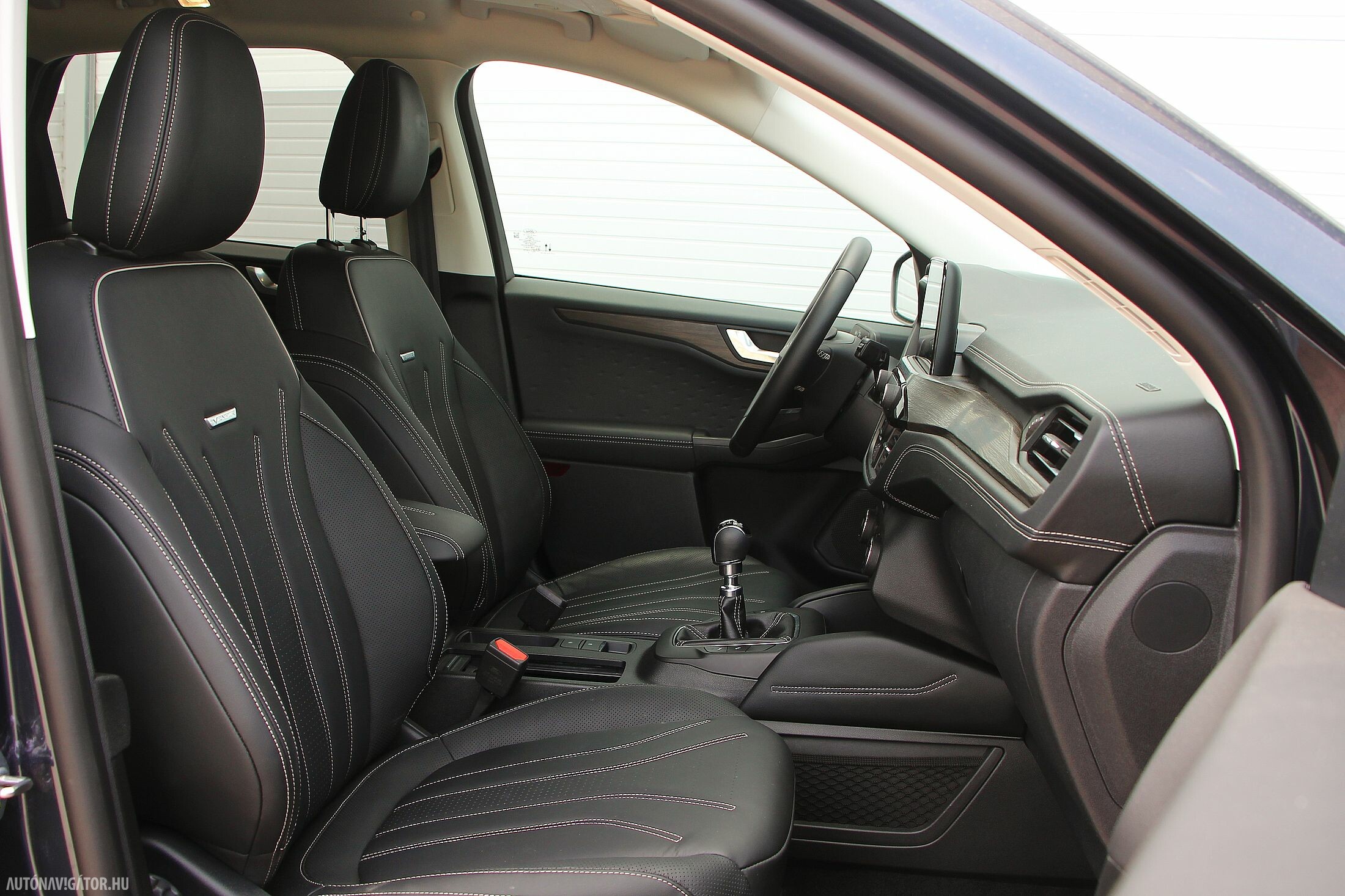 A műszerfal a Fordokban megszokott stílust követi. A középkonzol tetején a SYNC 3 rendszer érintőképernyője, alatta pedig a klíma vezérlőegysége található. A sebességváltó környékén pedig az üzemmódválasztó, a parkolóradar és a parkolósegéd gombjai sorakoznak. A szürkeséget pedig a valódi fára kísértetiesen hasonlító műanyag díszbetét oldja. Dicséretet érdemel még a digitális műszeregység is a tűéles grafikával, illetve az utasteret fényárba borító panorámatető. Ám érdekes módon a digitális műszeregység sem tájékoztat a könnyű hibrid rendszer állapotáról, magyarán nincs folyamatábra az energiavisszanyerésről, ami persze nem baj, csak már hozzászoktunk a meglétéhez.