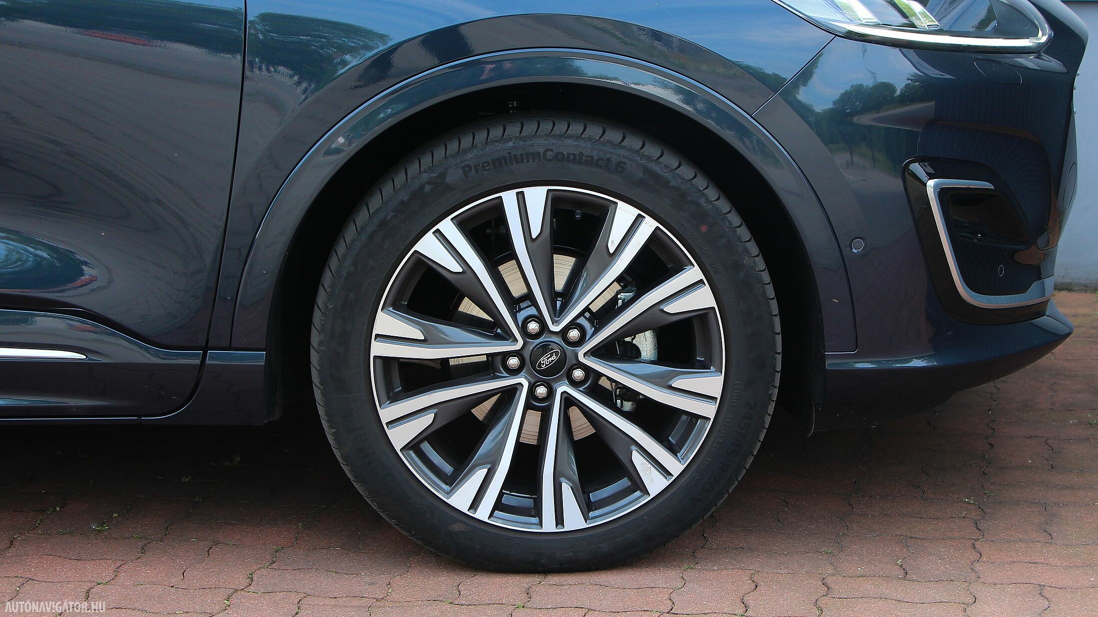 Jártamban-keltemben úgy tűnt, ez sikerült is, hiszen a tetszésnyilvánítás nem maradt el, még egy Lexus RX-ből is átkiabáltak a pirosnál, hogy gyönyörű a Kuga. Persze a Vignale feltűnőbb a krómkeretes oldalablakokkal, a sajátos hűtőmaszkjával és hátul a felirattal. Ahol nincsen rajta kívül semmi más, se a típus neve, sem a lágy hibridségre utaló felirat. Na, meg a 20 colos, valóban szép könnyűfém felnik sem barátai a rejtőzködésnek, sem a komfortnak.