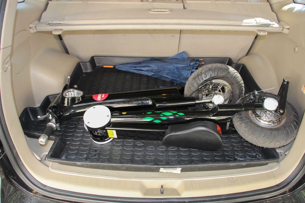 Összehajtott állapotban nem sok helyet foglal, akár széltében is befér a legtöbb autó csomagtartójába