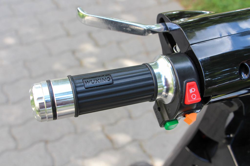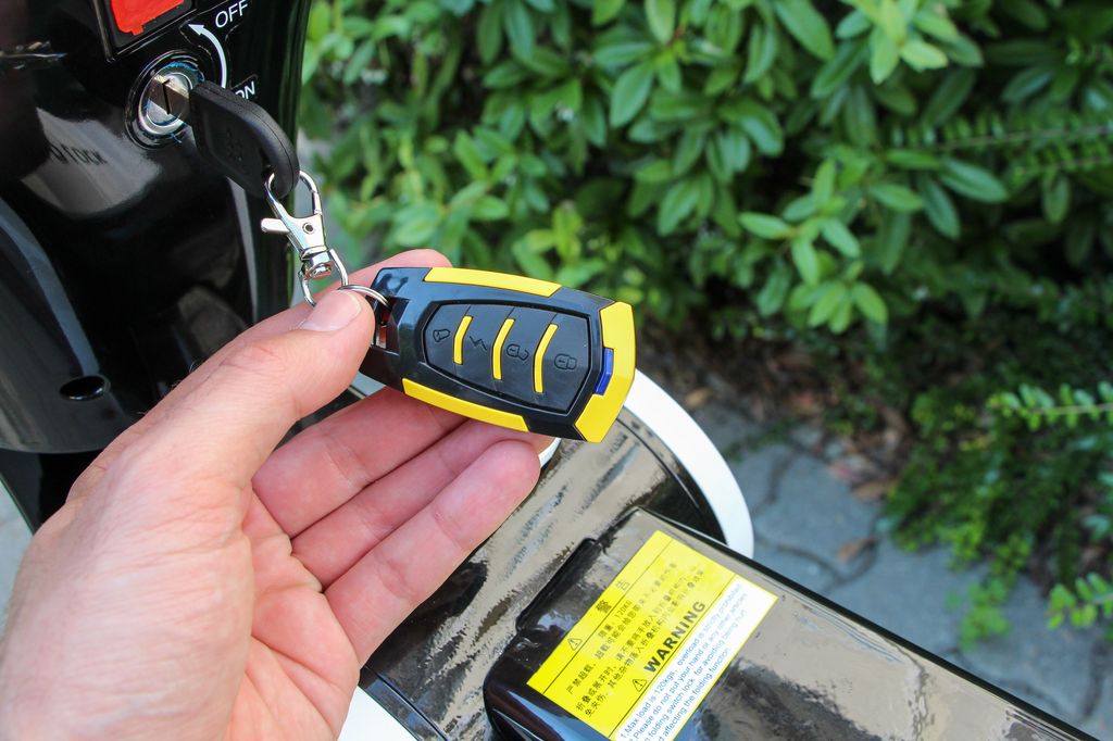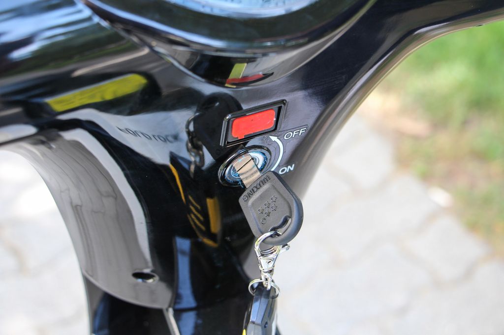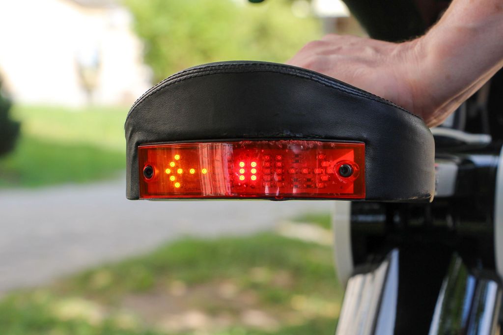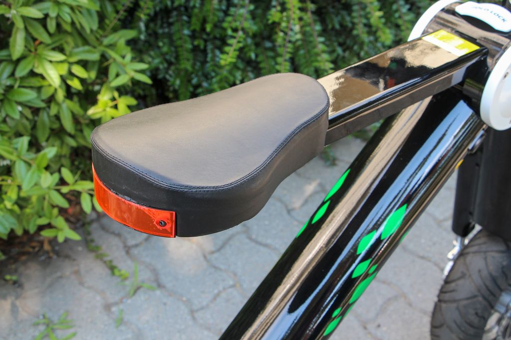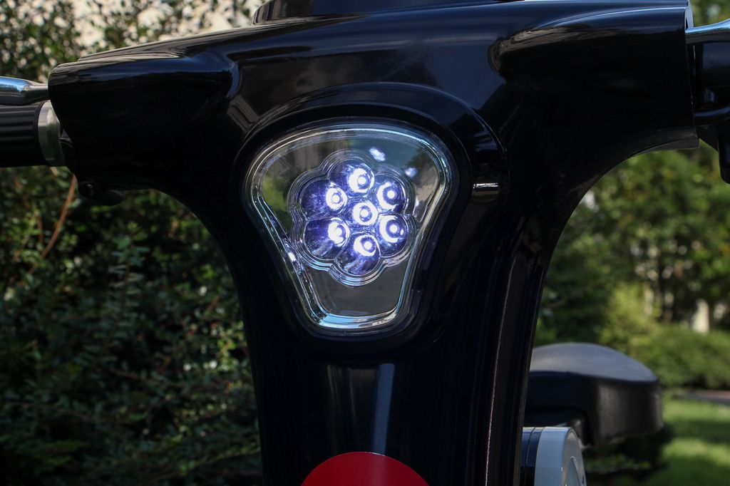 LED fényszóró, távirányítóval aktiválható riasztó, ami persze nem kelt vészesen nagy zajt, nyeregaljba épített hátsó LED féklámpa és irányjelző
