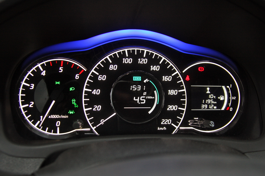 Az ülés kényelmes, az üléshelyzet magas, az A-oszlop fortocskástul is vaskos, sokat kitakar. Kár, hogy a kormány csak fel-le állítható. Tárolórekeszből van bőven, kesztyűtartóból rögvest kettőt is találni. Egy közepeset meg egy résnyit. Hogy minek, azt nem tudom, egy jó nagy praktikusabb volna. Az ablakemelők közül japán szokás szerint egyedül a vezetőoldali automata. Kritizálható még a lassú navigációs berendezés és az agyonreklámozott aktív biztonsági pajzs is, mert az egy dolog, hogy ebben a méretosztályban és ársávban egyedi a szolgáltatás, ugyanakkor a villogó-csipogó holttérfigyelő és a sávelhagyásra figyelmeztető holmi kamerája is lassabb-butább a drágább-okosabb radaros megoldásoknál.