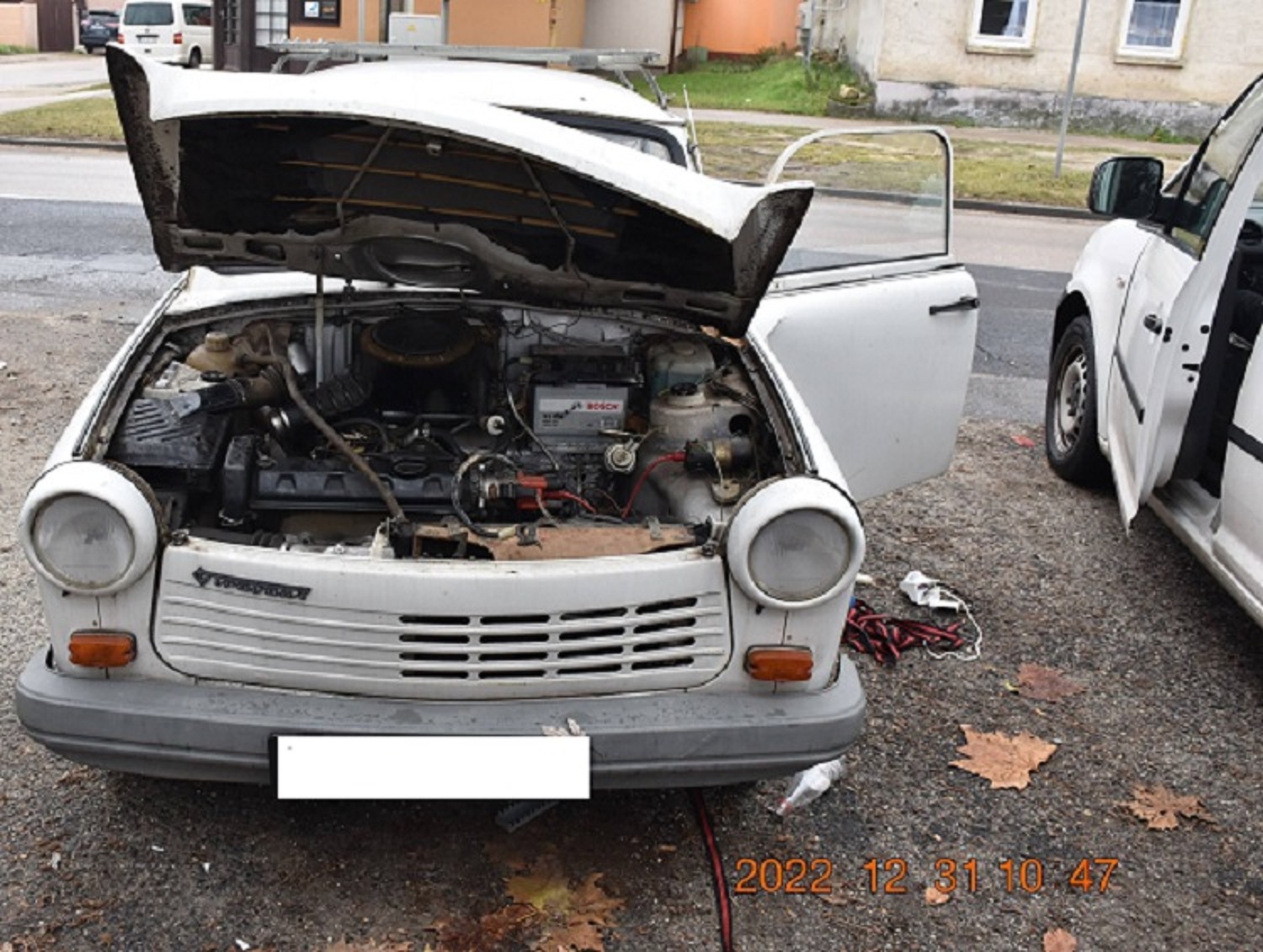 Nem zárult jól a 2022-es év ennek a Trabantnak, december 30-án éjjel minden ok nélkül megrongálták (Fotó: Police.hu)