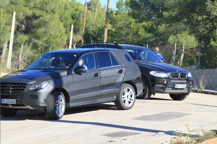 Nyári fotói után ismét előkerült a még mindig maszkírozott, de vonalaiból egyre többet, egyre élesebben mutató ML. A forma a kifutó, második generációsénál karakteresebb, a márka frissebb modelljeire, markánsan húzott vonalaival talán leginkább a csillagos márka belépő szabadidő-autójára,vagyis a GLK-ra emlékeztet. Az egyik fotón jól látható, a gyártó leginkább a BMW X5 legyőzőésre készül, ezért az újdonságot a fő riválissal együtt teszteli. A legfrissebb híresztelések szerint várhatóan csak jövő ősszel, a 2011-es Frankfurti Autószalonon bemutatkozó ML a hírek szerint csakis összkerékhajtással, de temérdek fogyasztást csökkentő rendszerrel, példaképp stopstart-elektronikával, vezérelt generátorral érkezik, hibrid verzió már a kezdetektől szerepel majd a kínálatban. A motorpalettán a márka friss 3,5 literes, a CLS-ben 306 lóerős V6-os és 4,6 literes (408 lóerős) benzinesét a bemutató után a vadonatúj, 5,5 literes, 536 lóerős AMG-féle, turbós V8-as is kiegészíti majd. A dízelpalettán az S- és a CLS-után itt is megjelenik a márka 2,1 literes, soros négyhengeres, dupla turbós, 204 lóerős gázolajosa, természetesen elérhető lesz a 3,0 literes V6-os CDI is, 265 lóerővel és akár BlueTec csomaggal, azaz az alapáras Euro5 helyett Euro6 normával. A jövő ősszel bemutatkozó harmadik generációs ML az árlistákon már várhatóan 2011 végén megjelenik, de első példányait itthonra csak 2012-ben várhatjuk.