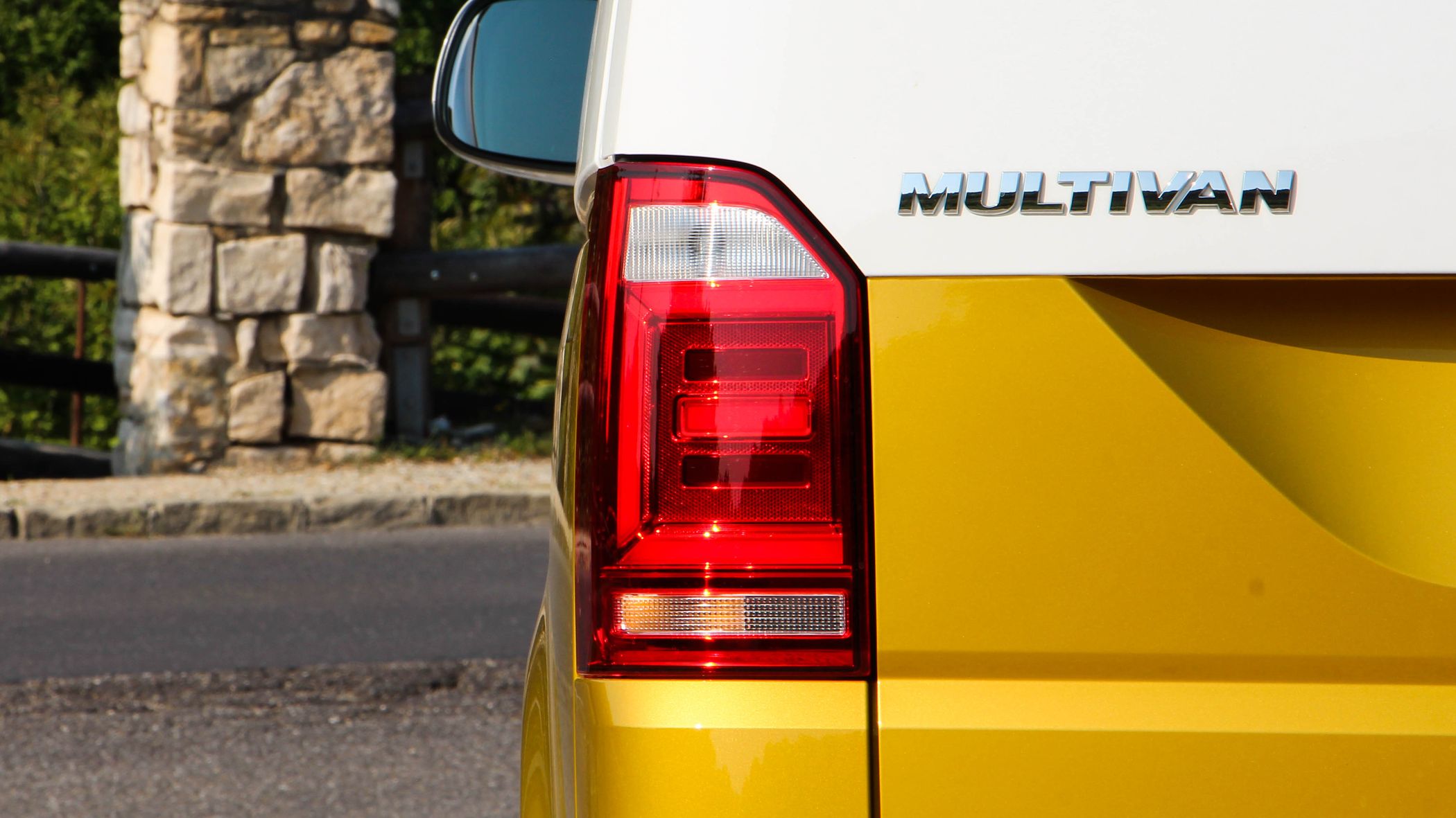 Pedig első pillantásra erősen kérdőjeles, hogy mit lehet annyira szeretni egy Multivan kisbuszban, ami ugye lényegében a VW Transporter személyszállításhoz optimalizált változata. Az egész egy guruló doboz, „németesen hűvös” formatervvel. Kevésbé költőien kifejezve baltával faragott a dizájn, amit a Bulli esetében az aranysárga-fehér fényezés és a látványosan tükröződő felülettel megáldott fehér felnik próbálnak palástolni. Elég jól egyébként, mert sok járókelő fordult a Bulli után, amire tényleg nem számítottam.
