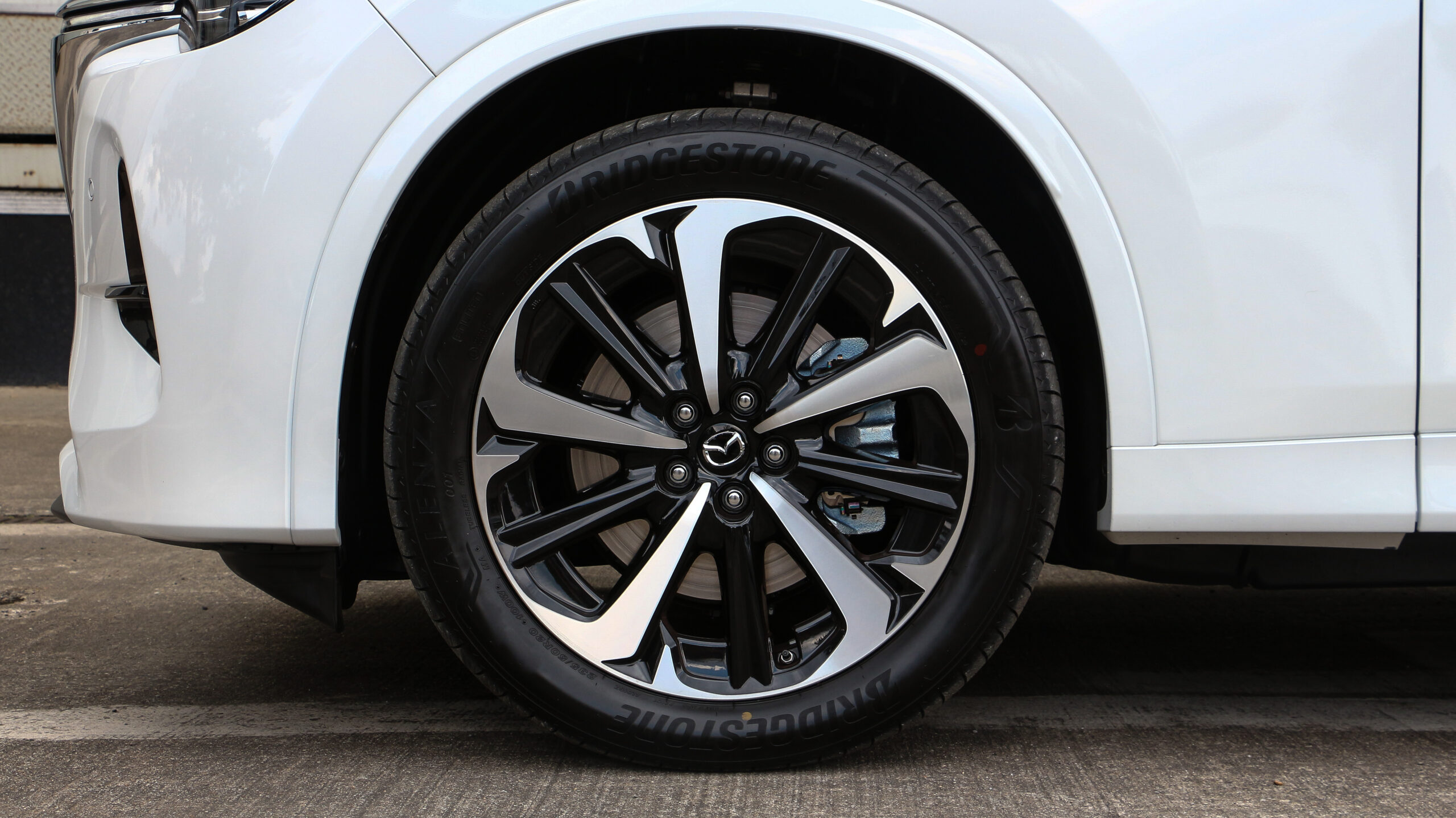 Nagyon jók az arányok a hosszú motorháztetővel és a minimális első túlnyúlással, így nem tűnnek fel a meghökkentő méretek: a CX-60 hossza 4745 milliméter, tengelytávja pedig 2870 milliméter