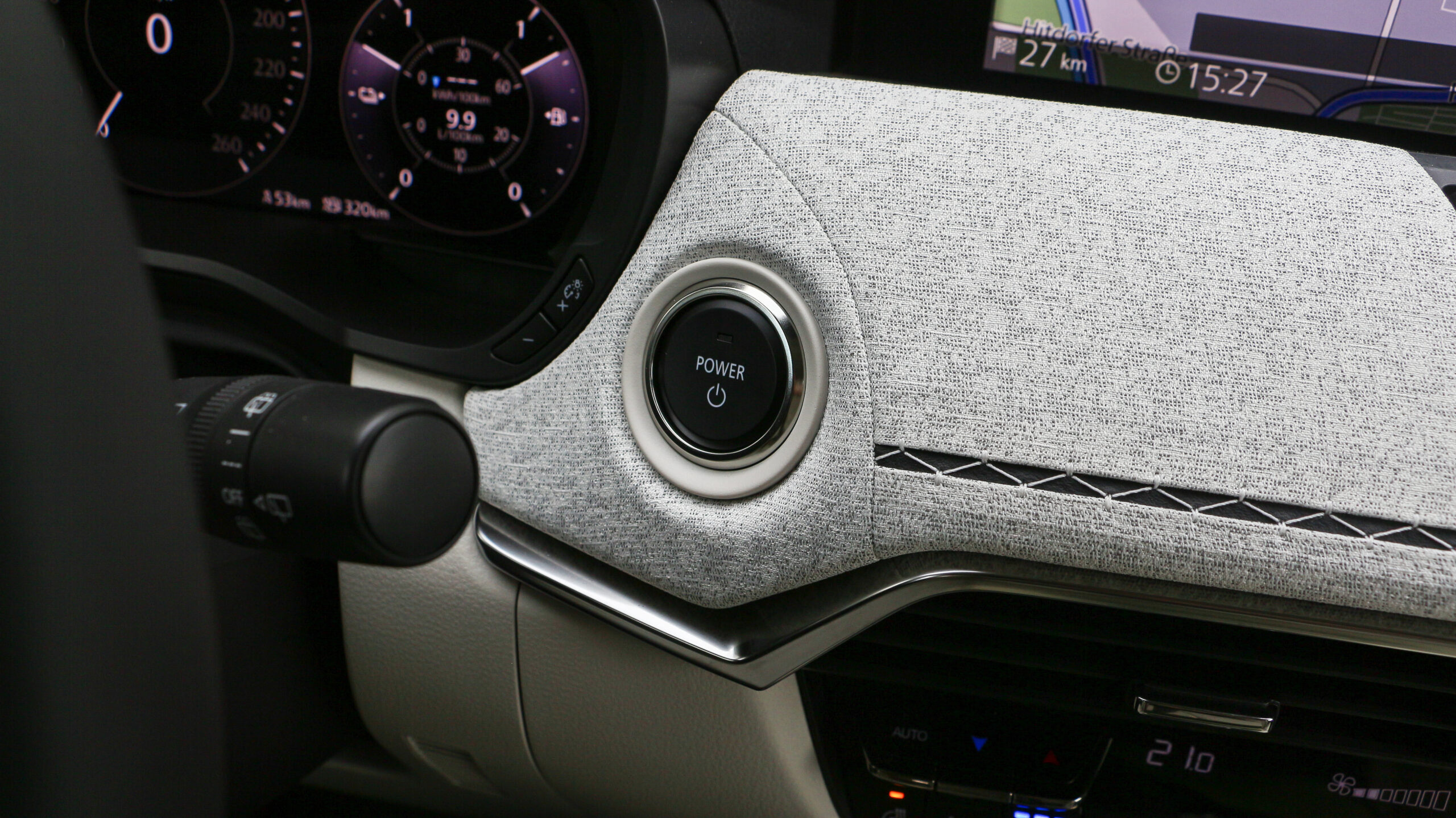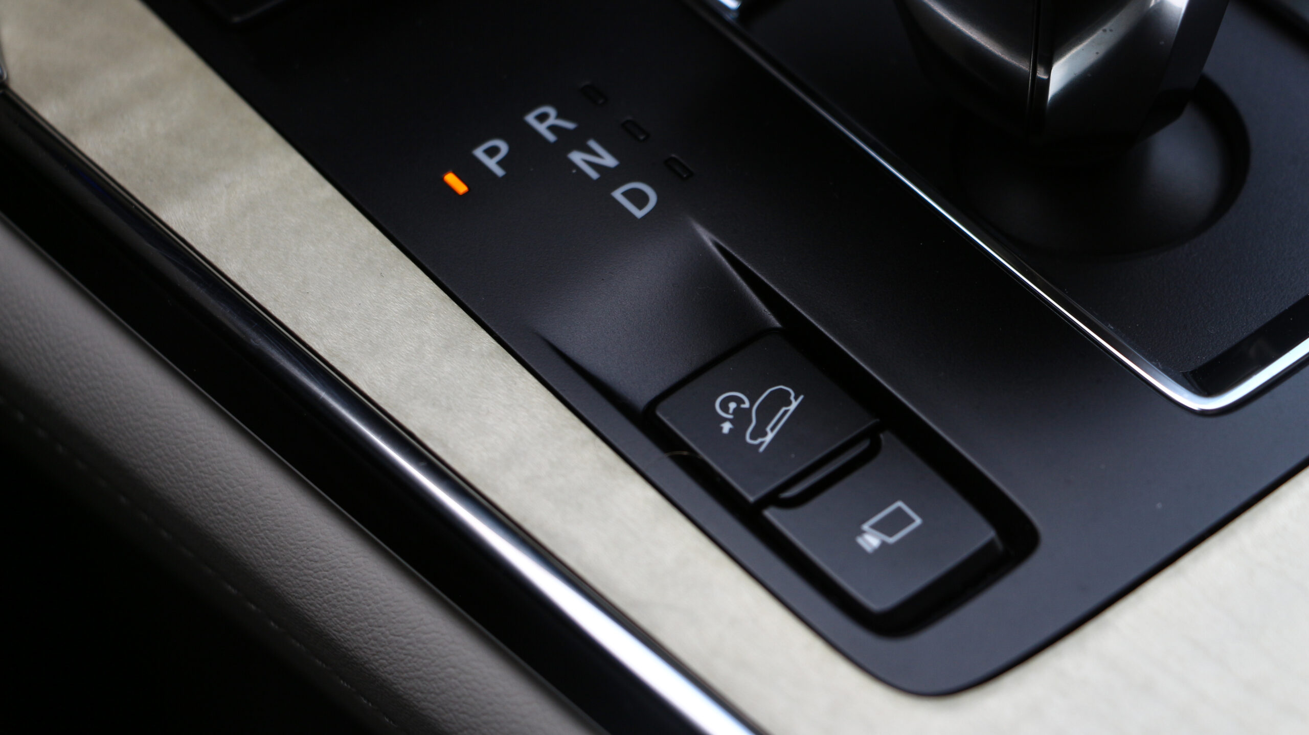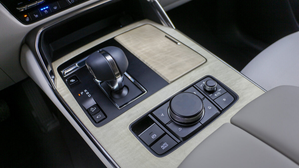 A középkonzolon a klasszikus automataváltó-kart idéző irányváltót és a meglepően egyszerűen kezelhető infotainment gombjait és teketőjét találjuk