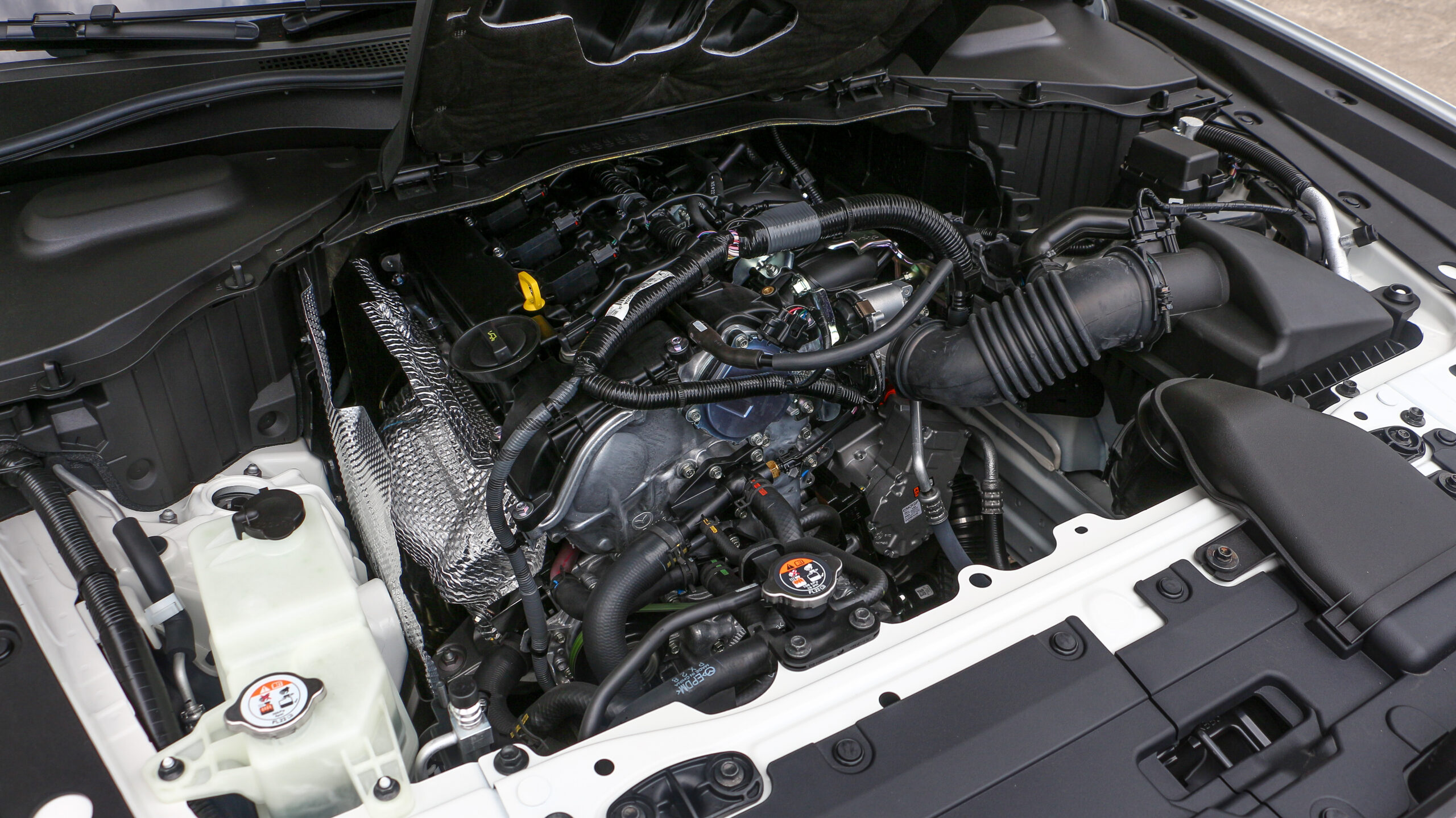 Alatta egy az utastér felé tolt, négyhengeres, 2488 köbcentis, 190 lóerőt és 261 newtonmétert produkáló erőforrást láthatunk, ami a váltó elé szerelt, 136 lóerős villanymotor segít: hasonlóan az első BMW M3-hoz, itt is látványosan hiányzik két henger